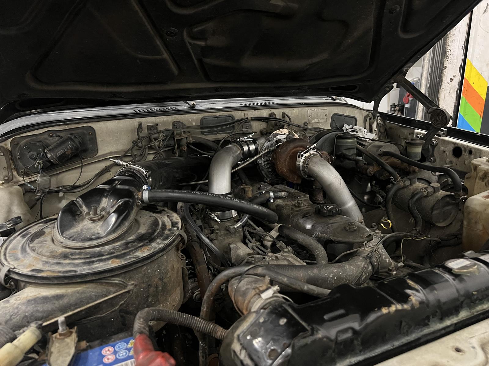 Turbon asennus on hyvällä mallilla. Huomenna käydä letkut ja putket niin vois ehkä jo savut ottaa jos kerkeää laittamaan kaikki paikalleen.