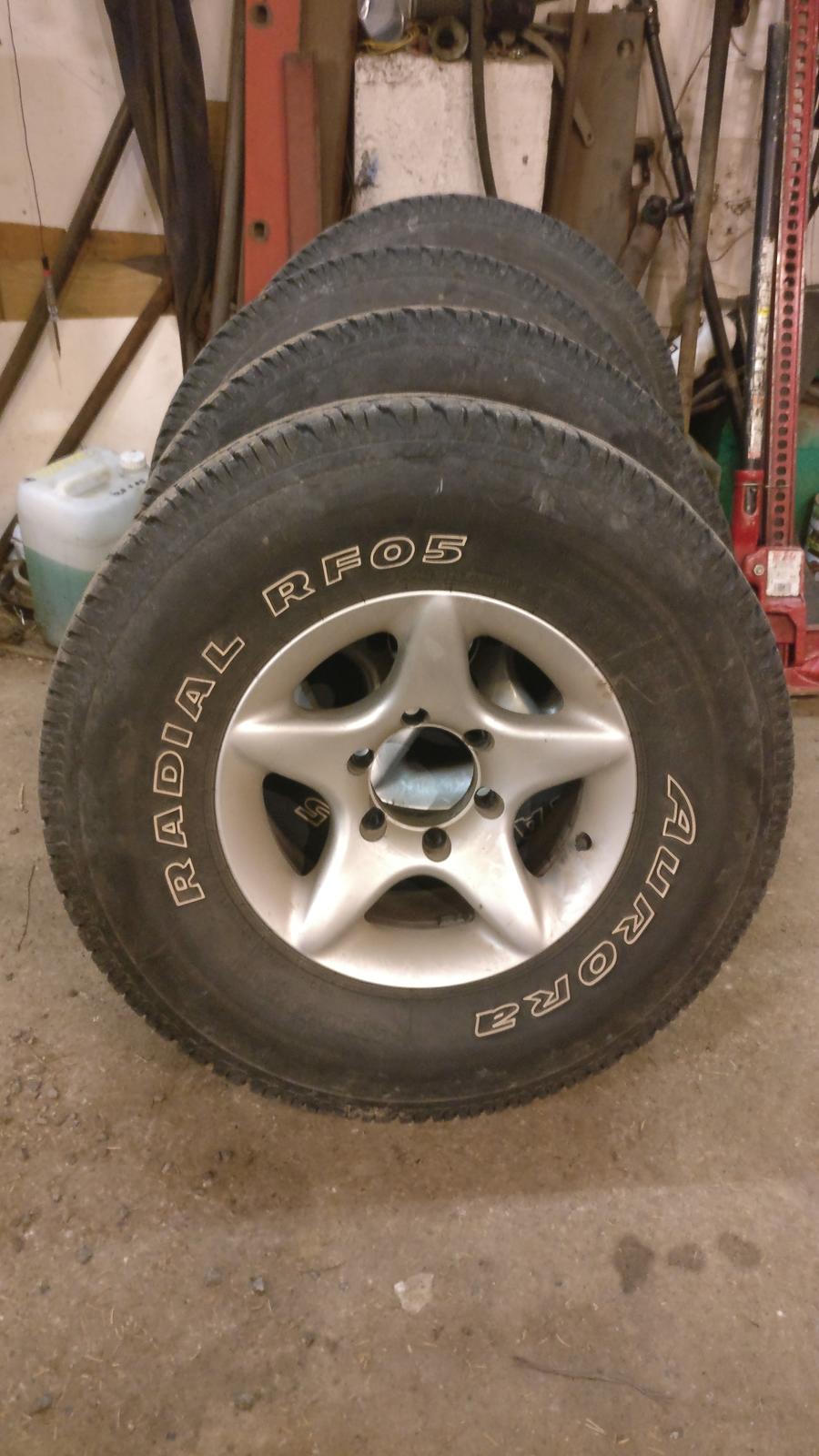 31x10,5x15 kumit aluvanteilla 6x139,7 200€Myyty M+S merkintä. Pintaa noin 4mm jäljel. Tasaisesti kuluneet ja ei vuoda. Olleet LN110 Hiluxissa. Vanteet hyvät. Vanteisiin omat mutterit mukaan. Porista löytyy.H. 160€ 0407603211 Myyty