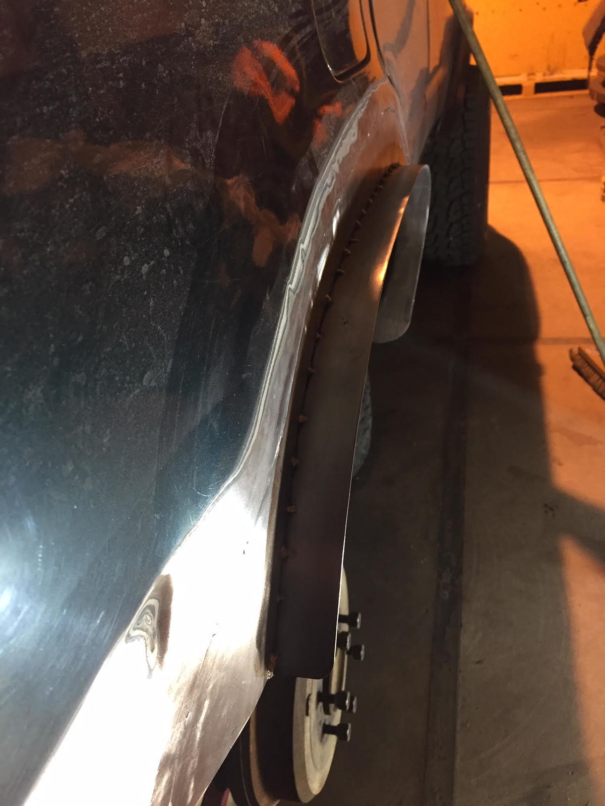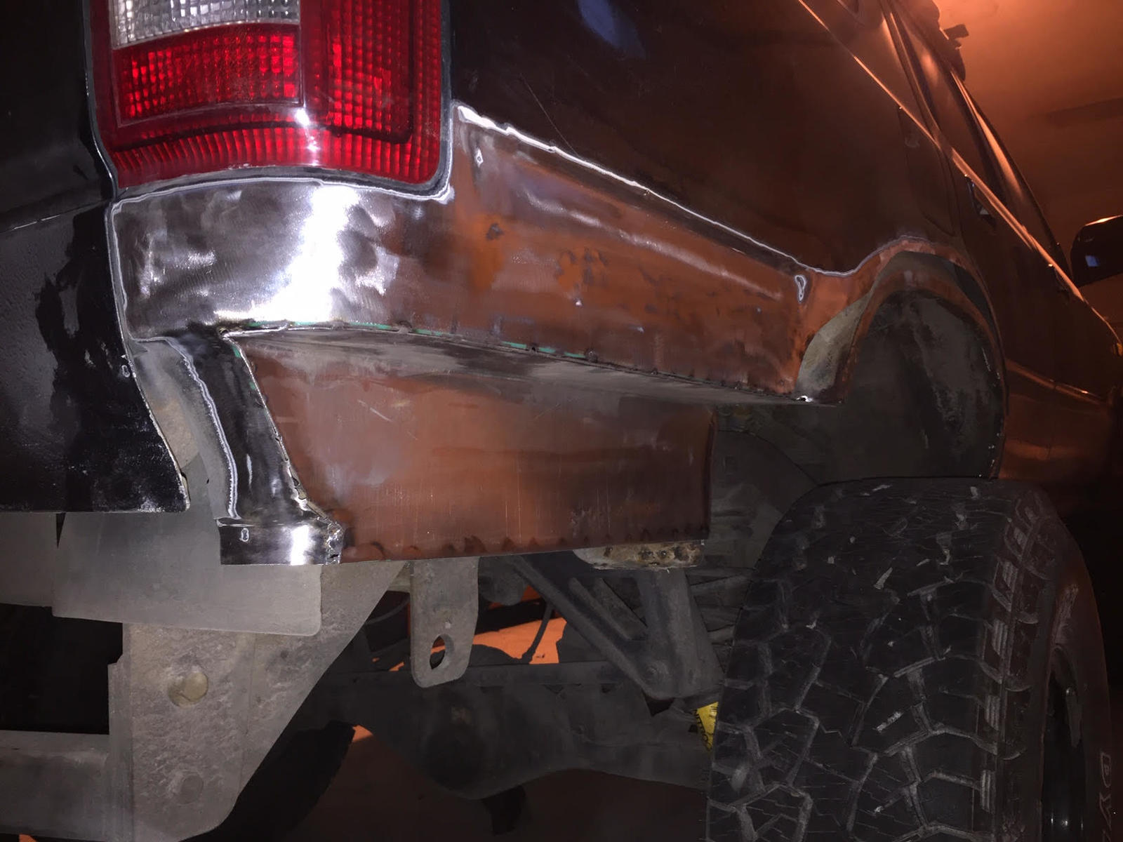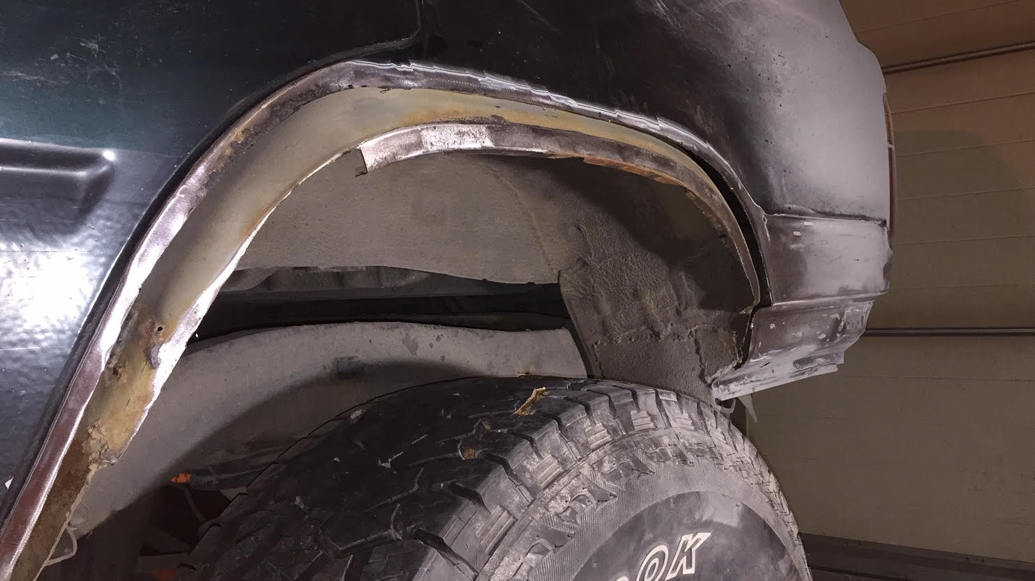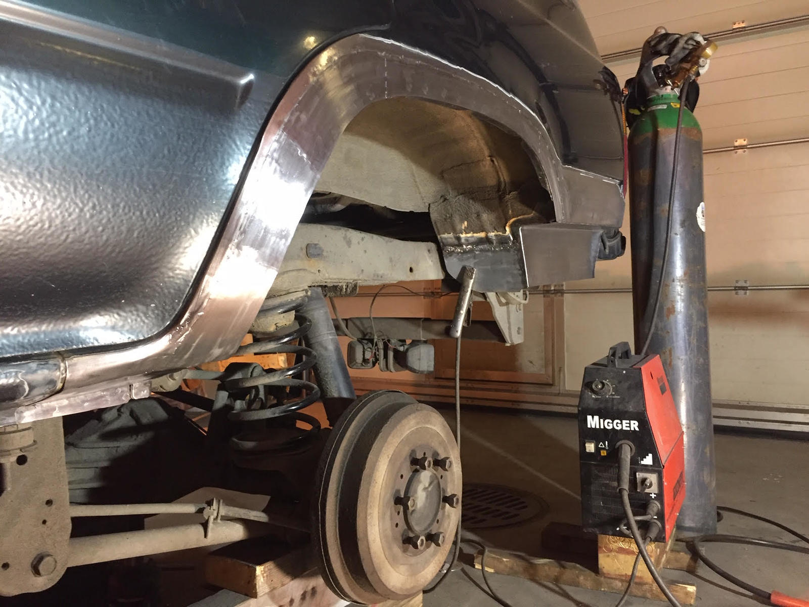 Takapyörien kotelot laikkasin pellille asti ja nyt siellä ja kaikissa muissakin kohteissa mitä on hitsattu on pohjalla 2 kerrosta Inertan 5 primeriä ja justaan sain vedettyä toisen kerroksen Inerta 50 päälle, vielä meinasin yhden kerroksen suhauttaa, massaruiskulla on hyvästi saanut mömmöt pintaan. Etulokareista laikkasin palan takaosasta niin että se on nyt suunnilleen korin kiinnikekorvan tasolla ja koko reunaan hitsasin myös levikepellin jotta muovilevikkeen ja kumilevikkeen saa kunnolla kiinni. Ensiksi kattelin levikkeet kohdilleen ja sitten porasin/kierteytin m6 kierteet peltiin, kaikki on 11kpl m6 ruuveja kiinni. Sitten ruuvsin levikkeet pois ja hitsasin mutterit jo valmiiseen kierrereikään kaveriksi. Nyt pysyy ja saa tarvittaessa pois ja taas kiinni kunnolla!! Takapuskurikin tuli kohdistettua koriin kunnolla, oli kokenut kovia. Meinasin maalata tuon kulahtaneen kromipuskurin mustaksi? Korin ja rungon väliin leikkasin myös peitepalat paskaroiskeiden estoksi, nekin myös m6 läpiruuveilla korissa kiinni. Samasta matskusta teen roiskeläpät. Polyuretaani roiskeläppää. ralliautoissa käyttävät. Myös edestä muoviset sisälokarit sai uuden kohdistuksen ja osittain uudet kiinnitykset. Sitten olis vuorossa etupuskurin oikominen ja tarvittava silppuaminen, siviili ajossa 35" mahtuu sitten pyörimään edessäkin. 33" mahtuu nyt joka asennossa pyörimään ainakin mitä rukilla sai nurkkia nosteltua. Edestä meinasin maalata maskin osat myöskin mustiksi ja uudemman modelin parkki/vilkku umpiot tulee myöskin kaveriksi. Sitten takakylkien kittaus ja sen päälle maalaus myös eteen. Jotakin kuvatuksiakin on, valo tuola hitsuuhallissa vaan on aivan paska. |