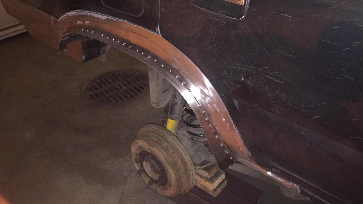 Näky oli aika häijy alkuun, siitä kun sitte puukolla raaputtelin isoimmat roippeet pois, ilmeni että onneksi sisälokasuojat vaikuttaa eheiltä, eli pintapeltien vaihdolla saattaisi selvitä. No purin sisältä verhoilut vielä pois ja se vahvisti epäilykset, sisälokarit on onneksi ehjät! Pyöränkotelon takana olevat helmat joutuu vaihtamaan, savipaskaa oli mukavat 5cm molemmilla puolilla. Huomena ohjelmassa irroittaa takapuskuri ja korirakenteiden putsaus, kaikki mahdollinen paska pois. Sitten hiekkapuhallus pyöränkaariin ulkoa ja sisältä niin näkee todellisen hitsaus tarpeen, samalla puhallan helmat. Mahtava ruveta mallailemaan metri tavarasta nuita korjauspaloja, onneksi on ehjät levikkeet niin saa mallailtua aika hyvin. Ja ennen kaikkea on tilaa hitsata ja käännellä poltinta. Nämä ruosteet oli sen näköisiä että joku on joskus nojaillut vähän johkin ja sitten on tehty pakkelilla suoraan pellille oikomiset ja sieltä lähtenyt kuppa leviämään. |