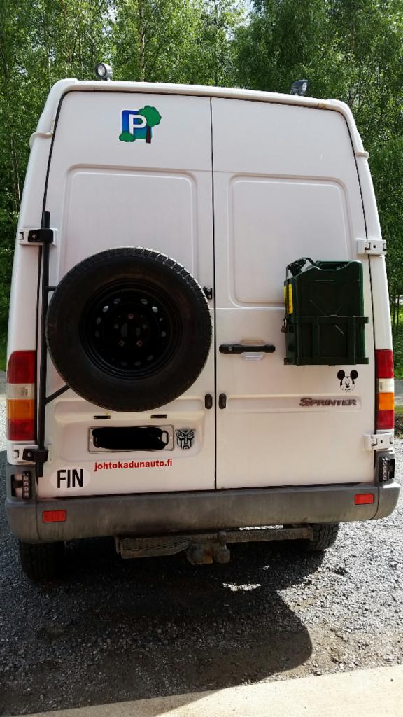 maastomatkailuauto Sprinter 4x4Eli pitkäaikainen haave nytkähti liikkeelle ja aloin tekemään yhdistettyä matkailu,huolto,kuljetus autoa. 2000 vuoden keskipitkä, korkea 4x4 sprinterin versio kyseessä ja 130hv moottorilla. puolisenvuotta meni aktiiviseen etsintään, että löytyi alennusvaihteilla oleva versio. Eihän tämä nyt varsinainen maastoauto ole ja mutamöngintään tätä ei tehdäkkään vaan perus karjalan seikkailuihin sotatanner/hubiajeluun ja et sisällä olisi omaan makuun olevat varusteet pitkän viikonlopun ratoksi. Wc ja suihku tietty + 120x180 sänky ja ainakin yksi lisävuode mahdollisuus elikkäs peltikuorinen matkailuauton tyypillinen sisusta siis. Hymer tekee uusikoppaisista märssyistä vastaavaa markkinoille vain 89k€ hintaan niin just nyt ei ollu moista tilillä joten tehdään itse halvemmalla Ulkoakin meinaan tehdä "asiaankuuluvat" muutokset ja nekin vähän matkien maailmalta kuvia katsellessa ja omiin tarpeisiin havaittuihin ratkaisuihin. Renkaat tulee olemaan 265/75/16 Hankook Dynapro MT ja nastoilla talvella samanlaiset. Viimesimmän Patrolin rakentamisen jälkeen päätin et seuraavassa autossa paskon sisällä ja pystyn seisomaan suorassa myös sisällä ja siitä se sit idis lähti. laittelen jotain kuvatuksia ja jorinaa alle projektin edetessä. (pääasiassa seikkailen netissä kännykällä joten koetan pitää täällä edes jotenkin "päiväkirjaa" jotta jäis itellekkin muisteloita mitä sitä taas tuli tehtyä)