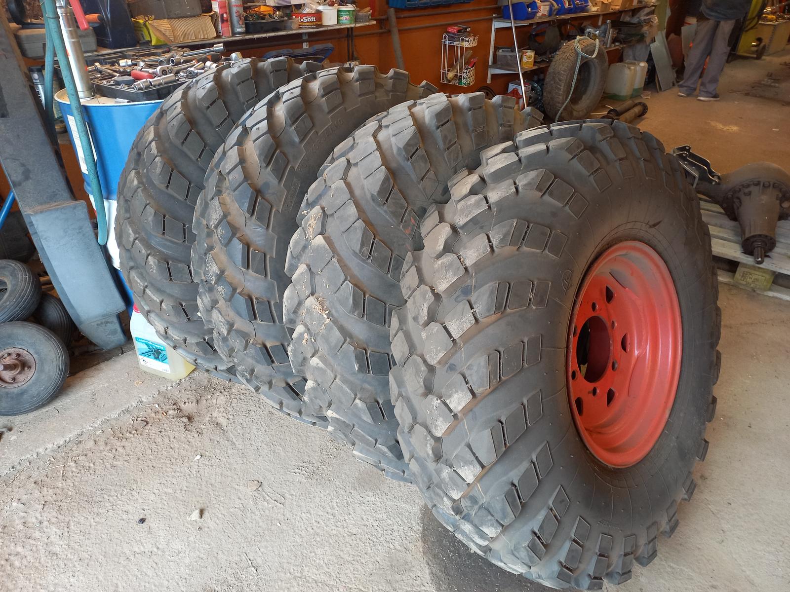 Unimog käytti muun muassa 10.5-18 ja 12.5-18 renkaita, nuo on niiden vanteita.