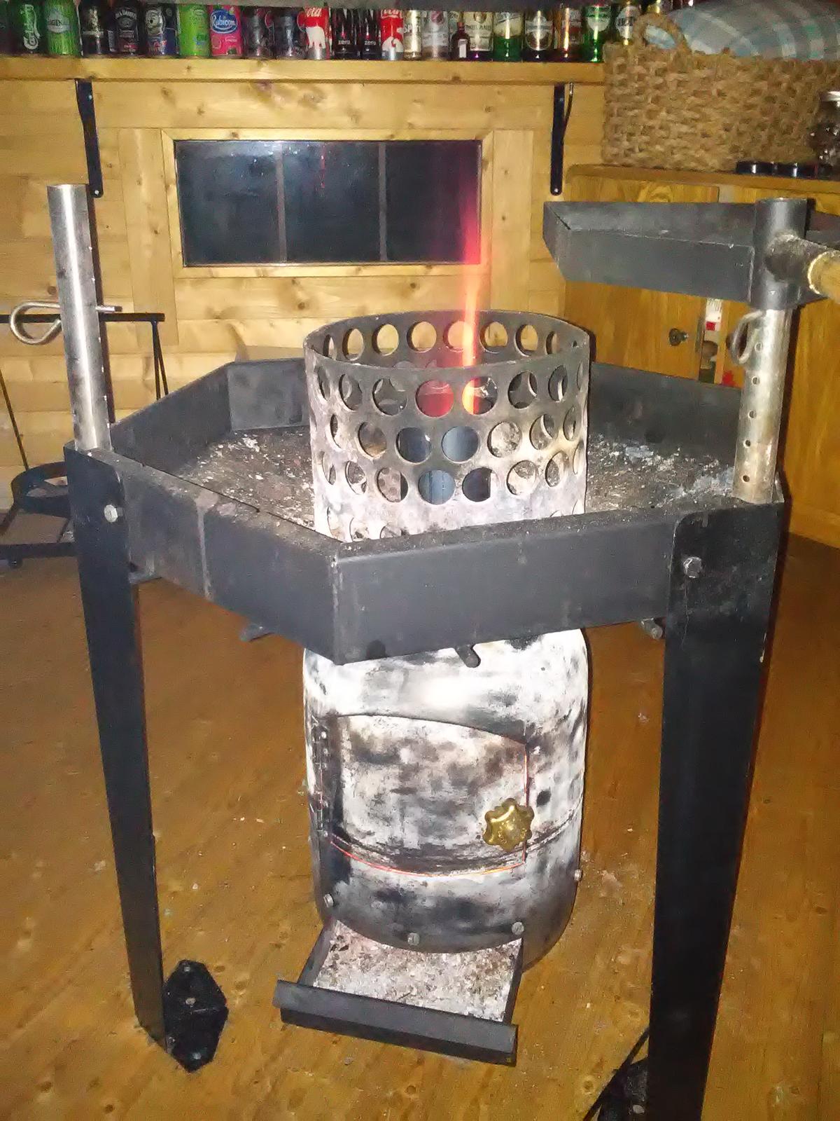 Näyttää melko paloalttiilta systeemiltä, kun paljas puulattia alla eikä mitään kipinäpeltiä