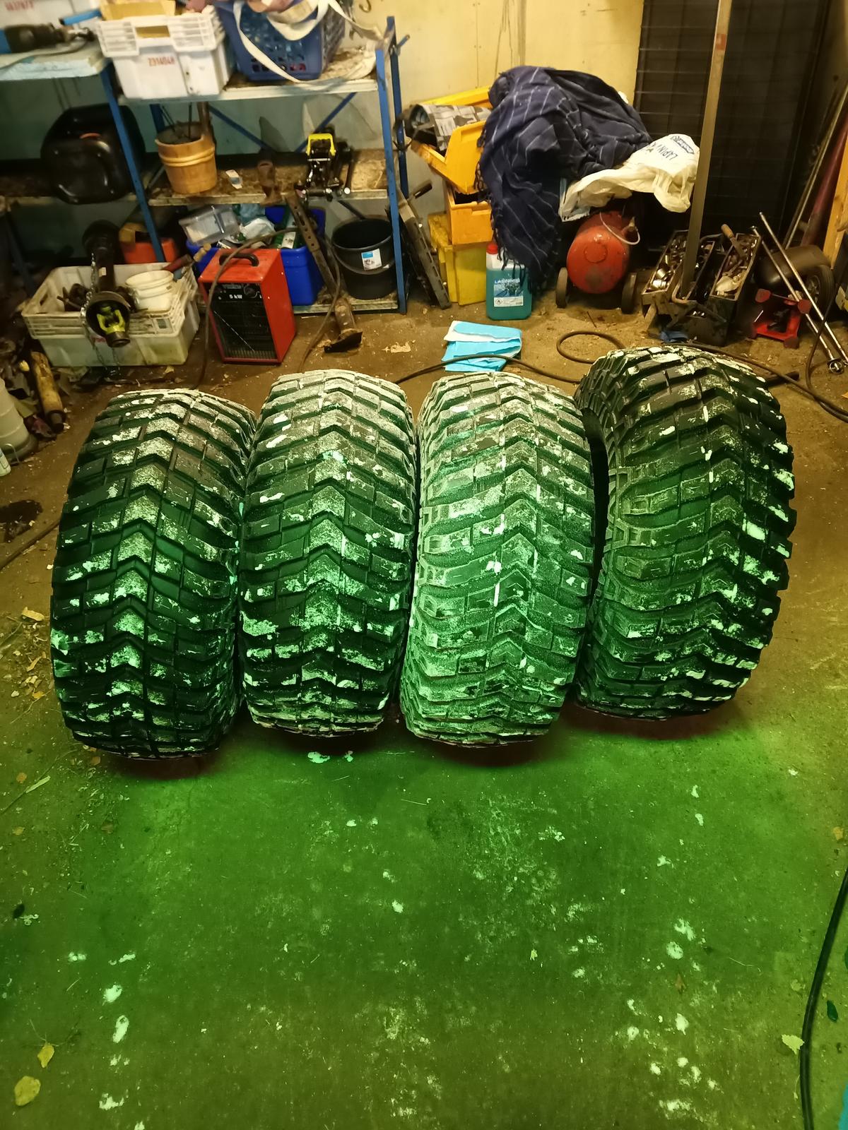 35x13.5 15 Mudzzillat vanteineen.Myydään / Vaihdetaan Myyty.Olleet land cruiserissa mutta auto on tätä nykyä päivittäisessä ajossa joten vaihdoin hieman maantieystävällisemmät renkaat. Maxxis mudzzilla 35x13.5 15. Kaikissa pintaa 12mm keskeltä mitattuna. Paistettu 1314. Pieniä viiltoja ja koloja löytyy mutta ilmat pysyy sisällä. Peltivanteet 15x10 6x139.7 jaolla. Rullamitalla mitattuna et noin 25mm miinuksella. Yksi vanne ollut jossain vaiheessa löysällä ja pultinreiät on hieman soikeat Mutta onhan tuo mukana pyörinyt. Vaihdossa voi tarjota saman kokoluokan Mud terrain renkaita tai vanteita. Pudasjärvellä. Ajelen scanialla säännöllisesti ympäri Suomea joten voivat kulkeutua kauemmaksikin. 0408465347 Hinta: 600 euroa Myydään / Vaihdetaan Viimeksi muokannut Jannala : 23.12.2021 20:53 |