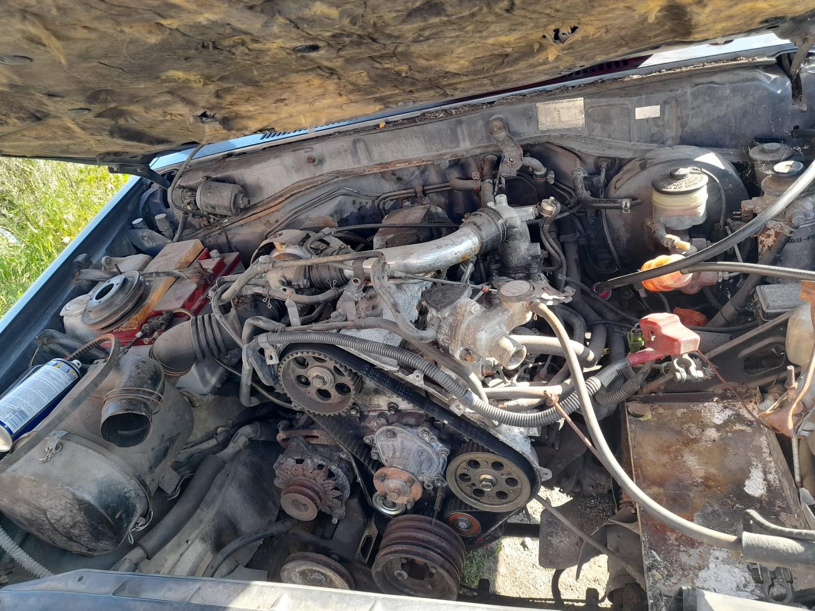 Seissyt yli 20v. Offaamaton kori. Rungossa ruostetta. Moottori käy. Autoa purettu lasit ja verhoilut irti, varmaan jotain voi puuttuakkin. Vaikka varaosiksi. Mukaan uusi vesipumppu ja jakohihna.