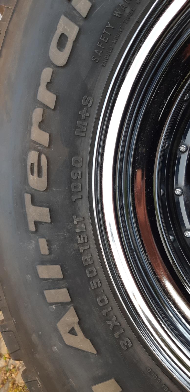 Luultavasti Hiluxissa olleet BFGoodrich All Terrain 31x10.50R15LT, Load Range C, renkaat 4 kpl siisteillä vanteilla,
