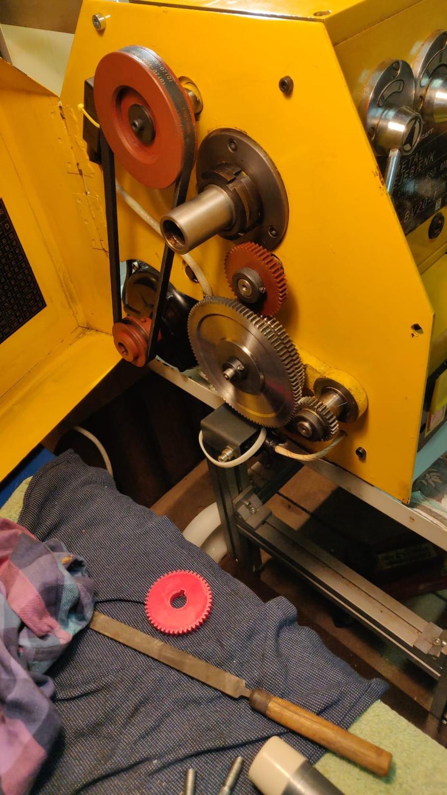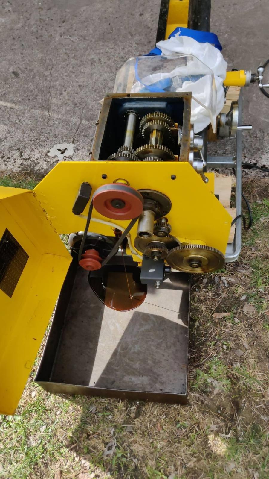 Muutama kierros pesua kaikilla tunnetuilla kemikaaleilla. Laitoin vaihteistoon myös muhjunkeruu magneetin. Sisäänajoon jäi hytikkaöljyt mitkä myöhemmin vaihtui traktorin vaihteistoöljyksi. Tällä rallatus hiljeni hyvin. Jäi vielä tehtävääkin. Ensimmäinen vaihteensiirrin toimii niin, että hammaskosketus jää puoliväliin. Kunhan saa inspiksen niin pitää korjata tuokin. Samalla kiristin hihnan. Onpahan viritys. Ei meinaa mahtua avaimet väliin vaikka kone on pöydästä irti.