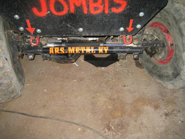 tässä muutama kuva jömbiksen ohjauksen toteutuksesta. kääntövarret on omavalmisteiset ja tuli noitten neljänpultin lisäksi kiinni vielä tonne käännön rajotuspultin taakse.