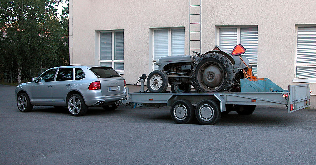 Ohessa kuva. En muista nyt onko TeroK kärrissä vinssiä tossa edessä, mutta muuten likimain identtinen peli kyseessä. Kärryn massa muistaakseni otteessa 640 tai 650kg. Eli hyötykuorma on noin 2100kg sitten vissiin. Nämä siis muistinvaraista tietoa.