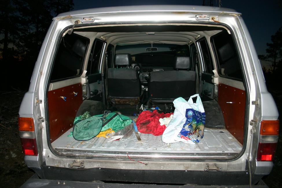 Tojota löyty sauvosta asteen verran karsittuna. Autosta on viety renkaat,vinssi,akut,ylläpitolaturi,kattotelineet valoineen,takaluukut (ehjäpeltiset), itse tehty väliseinä, rokkivehkeet, kilvet, ym ym.... et taitaa alkaa meikäläisellä uus projekti.