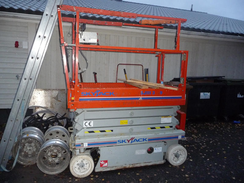 Skyjack SJIII3219 saksilavanostin. Suurin kuorma 226kg, henkilöluku 2 + lisäkuorma 46kg, käyttövoima akku 24V, alin käyttölämpötila -35 astetta, paino 1266kg, lavakoko 0,7x1,65m, suurin lavakorkeus 5,8m, suurin sivu-ulottuma 0,9m, tuennan leveys 0,75m, kuljetusleveys 0,85m, kuljetuspituus 1,7m, kuljetuskorkeus 2,01m. Myydään katsastettuna ja Luumäellä tämäkin. Hinta 5200 euroa+alv