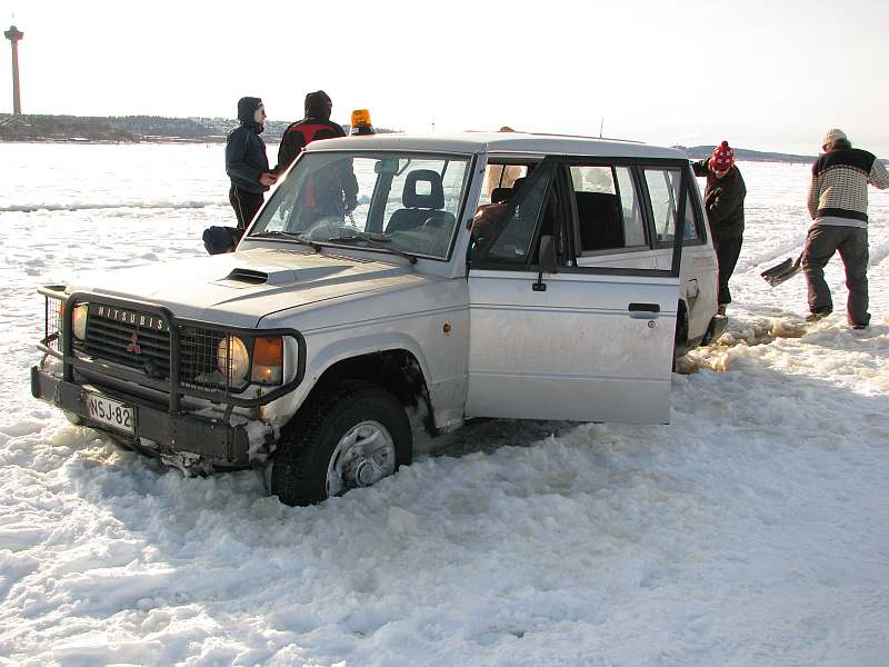 Tämmöstäkin offausta..Käytii tänää kävelemässä siilinkarille ja poistumassa oltii ni kahvilan pitäjä lähti hakee pajerolla täydennystä. Tällai sitte kävi.. Ei lähteny ainakaa iha heti liikenteeseen, toivottavasti pääsi kuiteski pois sieltä