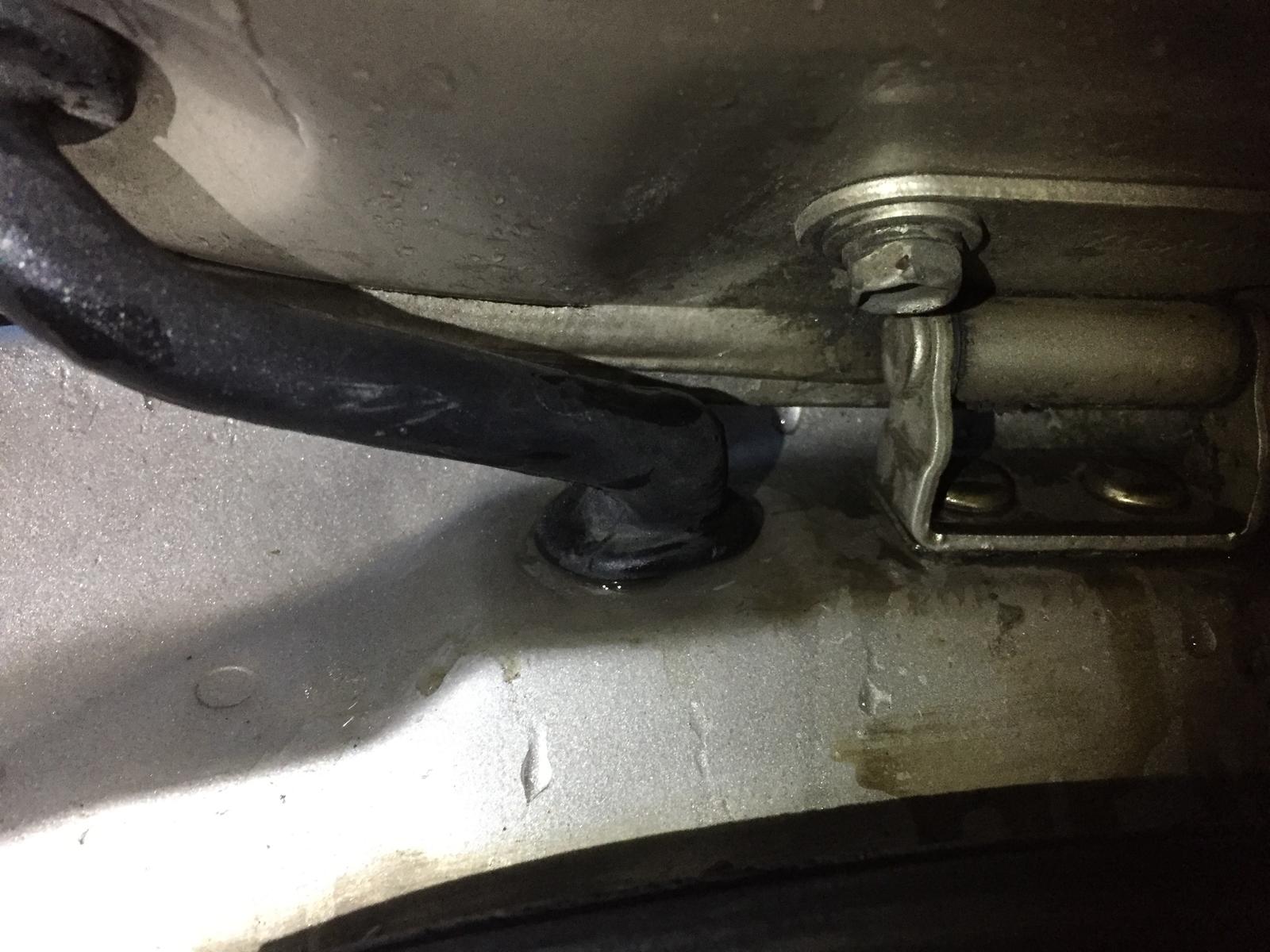 Öljyn pinta on mun mielestä yleensä sillä korkeudella, että jos auto on vaaterissa, niin anturiluukun voi avata ilman että öljy tulee ulos. Jos öljyt on täytetty aiemmin perä korkeemmalla eli kaltevalla pinnalla, niin sieltä voi tulla reilustikin öljyä ulos. Liimaa tarviit joka tapauksessa jos meet irrottaa noita.