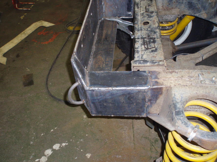 Rungon takapää hitsattu kasaan. Vinssikidan reikä vain puuttuu. Seuraavaksi kaarien ja lavan suunnittelu.