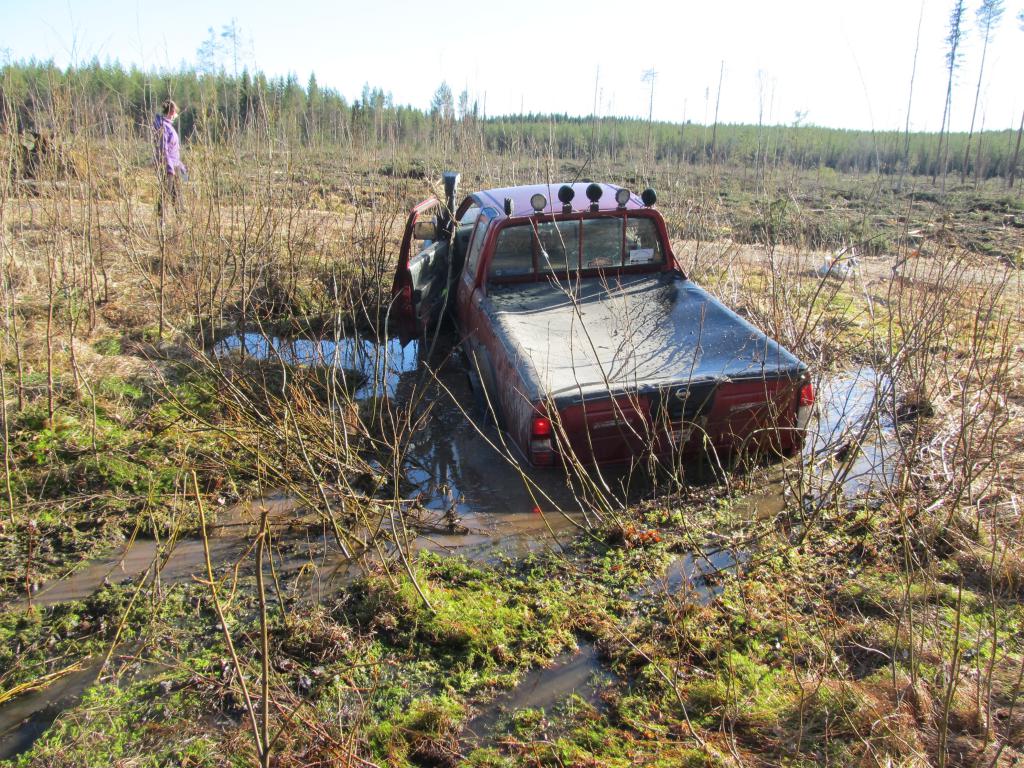 Juuri äsken tapahtunuta pikkuinen peränheitto tiellä ja liukas mutka ojassa patrol85 siis