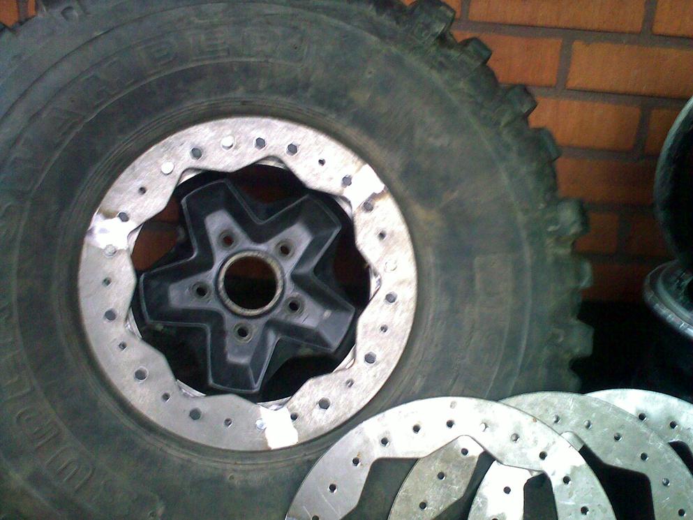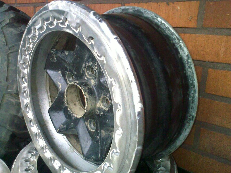 Tämäkin projekti alkaa valmistumaan, Offroad-tarvikkeen kautta tuli materiaalit ja eräs Oululainen konepaja hitsasi laipat vanteisiin tänään. Saumat näyttää kyllä hyviltä, mutta vähän pelottaa tuon ilmojen pysymisen osalta kun sisäkehän kylki on ihan suora taso (ei siis mitään hitsisaumalla paksunnettua uloimmaista reunusta).... kun sisälaippa on normaalia paljon paksumpaa tavaraa (8mm merialumiini) niin se hitsisaumakin jäi sinne matalammalle mitä laipan taso on.