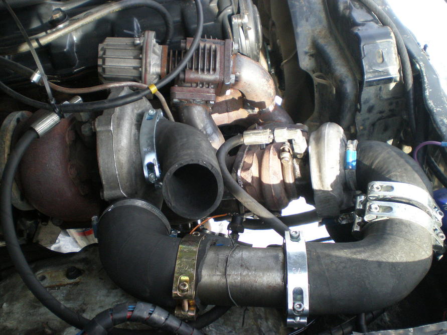 Hyvin toimii. isommilla paineilla pikku ahin ohitetaan isolla hukkaportilla. Isompi ahin toimii vasta yli kilon paineilla. Äänimaailmakin kohillaan. kuulostaa läinnä kuormautolta, ainakin ku nostaa kaasun kovasta vedosta. Niin, nyt paineet vaan 1,5 bar. Toi pienempi ahdin oli tosiaan liian pieni. Nyt paikallaan pajeron fööni ja isompi jostain kaks turbosesta mersun kuormaautosta, kai 14-15 litrasesta.