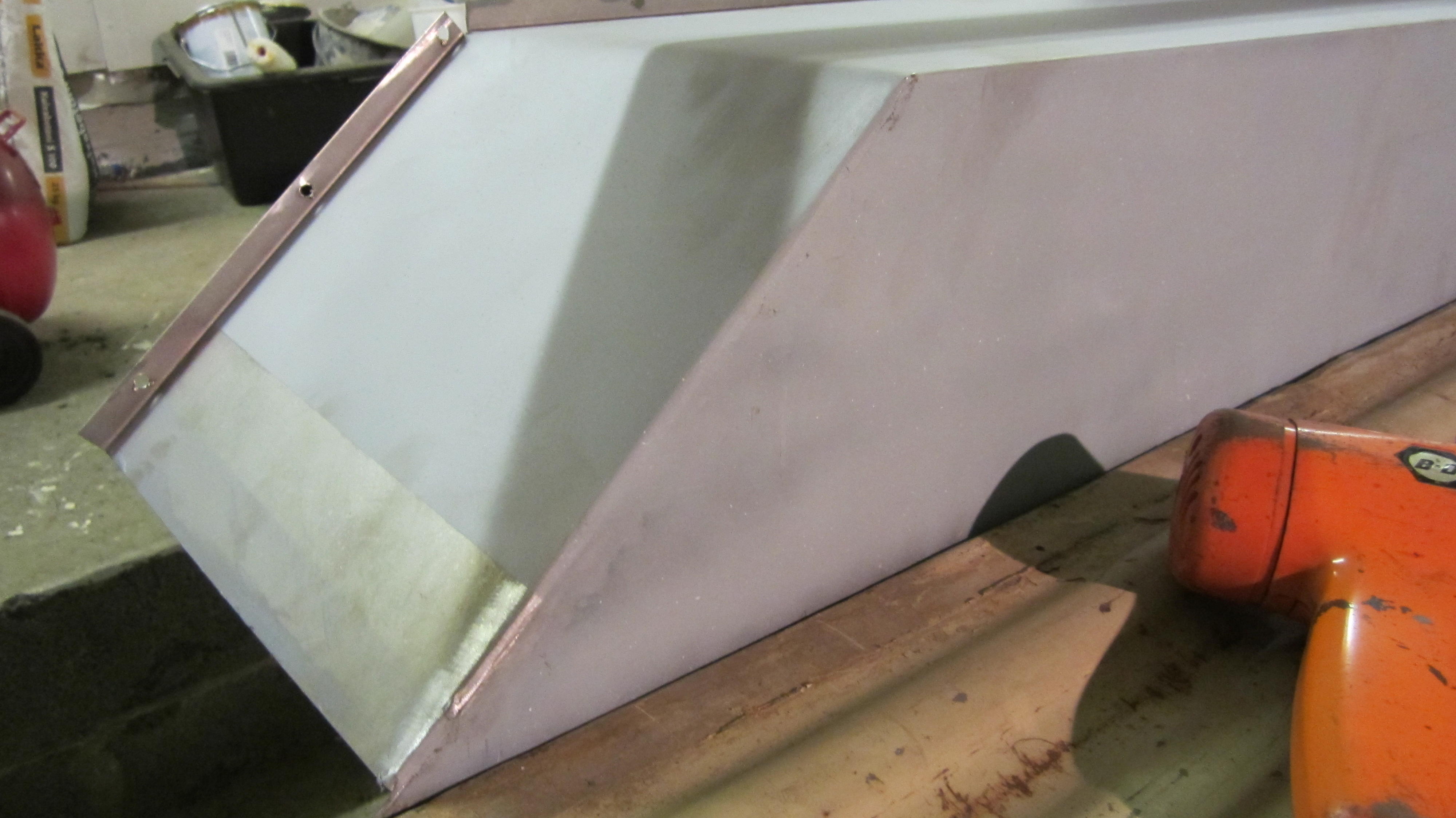 Tuon 45 asteeen kulmaan taitetun sisälokarin takapään-kulmankin tinasin sileeksi.. Tuli hieman jatkettua myös oikean takakulman tinausta loppuun. Viimeksi loppu tina kesken. Josko huomenna taas jonkun tunnin kävis heppailemassa..