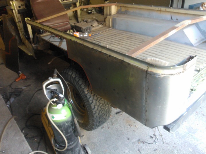 Tulipahan tänään tehtyä loppukylkipala kuskin takakylkeen... Ei vielä saanut kiinni kun piti tehdä hieman pohjustusta.. Ja arvelin sisälokarin maalailla ja saumailla ennen kuin pistän kyljen kiinni.. Ja sisäloksun saumat pitää kanssa tinata, jos sais niistä kestävämmät ja siistimmät..