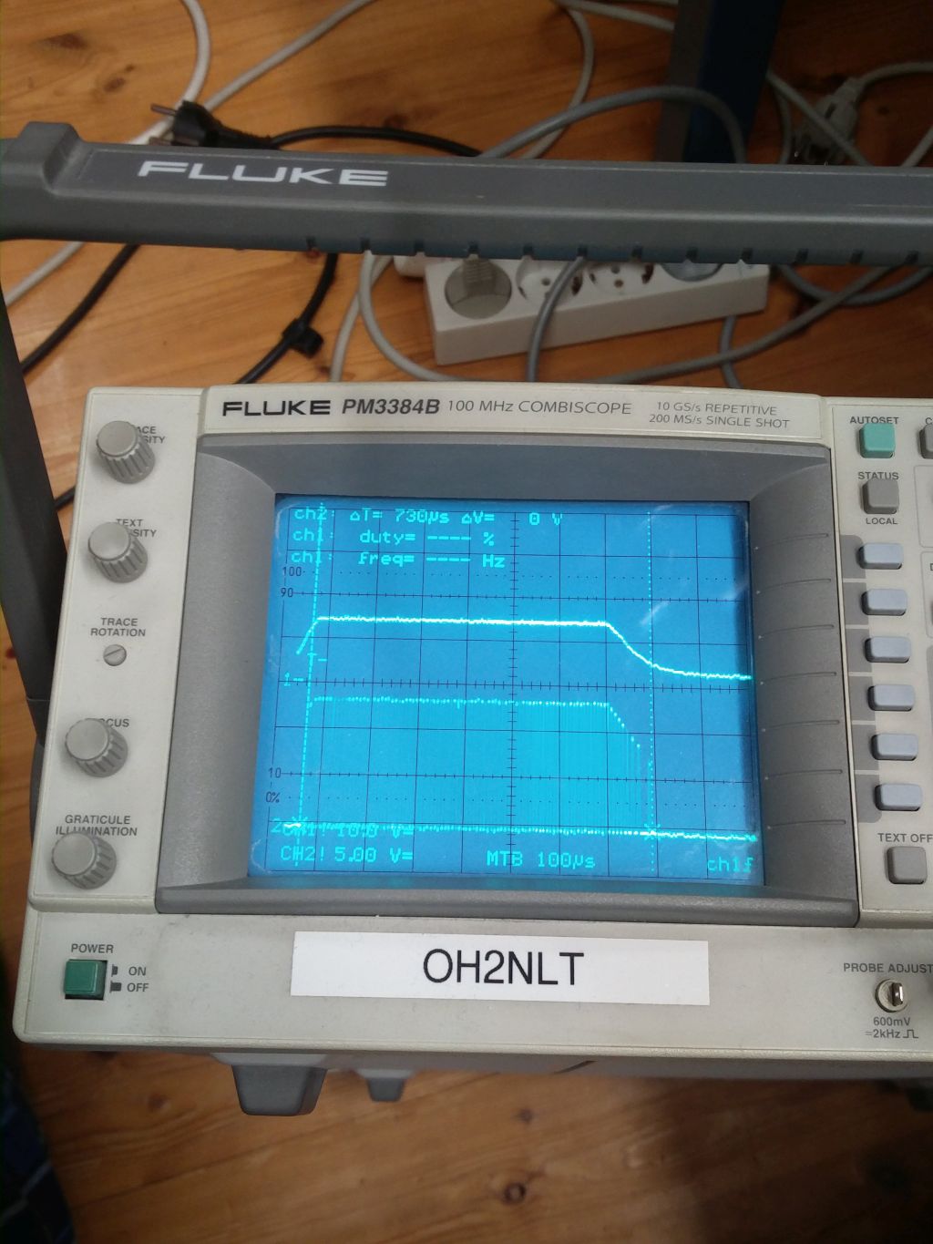 Lampun powerin herääminen osoittautui riittävän nopeaksi. Vaihtelee jännitteen mukan, mutta suuruusluokka oli aina alle 100us. Powerin edessä on lampussa jonkin verran (en irroittanut ja mitannut) kapasitanssia mikä näkyy hitaana sammumisena, vähän reilu 100us. Näillä arvoilla päästäisiin jo kHz luokkaan, mutta PWM ohjaimen häviöt ja EMC asiat muuttuisivat hankalammaksi. Toteutus lähti 100Hz alueella toimivasta säädöstä liikkeelle.