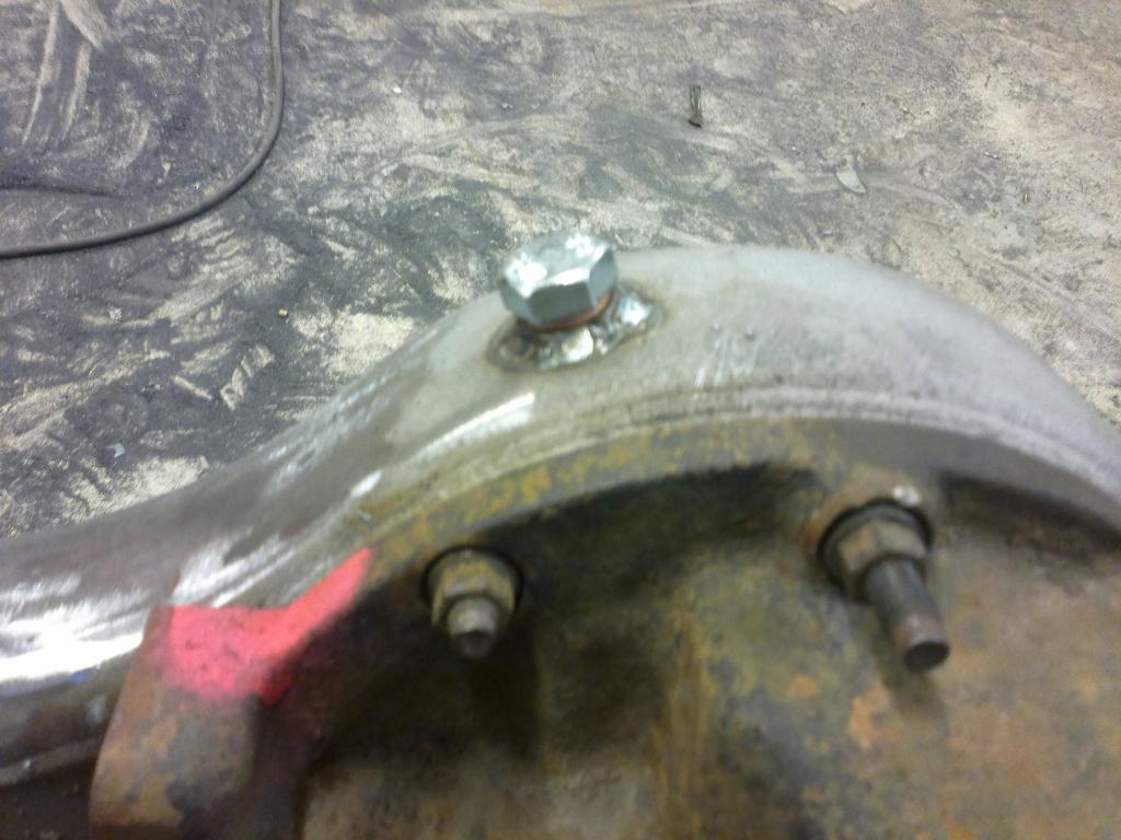 eli mutteri hitsattu sopivaan reikään ja pultti katkottu sopivan mittaseks + kupariprikka tiivisteeks: