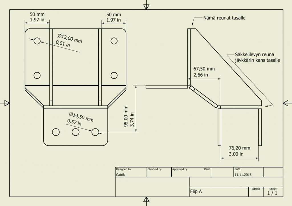 Chevy 73-87(91) shackle flip piirustuksetOisko täällä tämmösesta kiinnostuneita? Oma ylpeys ei kestä valmiiksi tehtyjen osien ostamista ja kunnollisia kuvia ei löytynyt niin aloin piirustelemaan itse. Tällä hetkellä näyttäis tältäSuunnitteluperusteena on ollu että osat tilataan CNC-leikattuna ja ne on sitte helppo rullamitan ja suorakulman kans hitsailla kasaan. Keskimmäinen sakkelin kiinnitysreikä on samalla paikalla kuin alkuperäisessä ja viereiset 40mm päässä. Kaikki levyt 6mm. Suunniteltu 1.5" puslille, niille joutuu sorvauttamaan holkit sakkeleita varten jos ei satu sopivaa putkea löytämään. Jaa mikäkö tämä on? Parempi vaihtoehto blokeilla korottamiseen taka-akselille. Alkuperäinen osa näyttää tältä http://67-72chevytrucks.com/vboard/a...1&d=1165537816 ja tämä siis muuttaa jousen kiinnityksen alapuolelle. Korottaa 4" vakiopituisella sakkelilla. Valmiina osina näitä löytyy esim ORD:ltä http://offroaddesign.com/catalog/shacklekit.htm ja DIY4X:ltä http://diy4x.com/product.php?product...cat=250&page=3