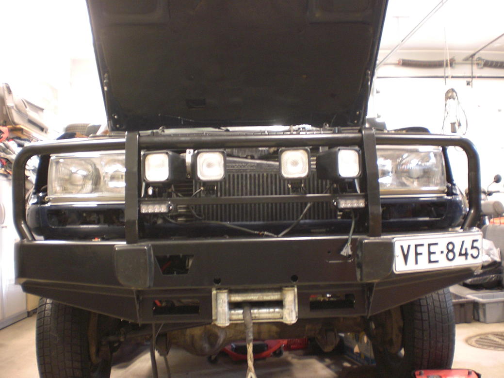 Valmis tuote maalattuna, vinssillä, hälyvilkuilla, vararenkaalla ja pa-kannulla varustettuna autossa kiinni...