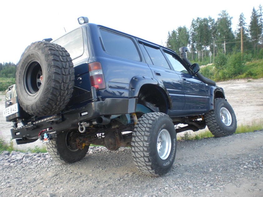 35" näköjään maksimi rengaskoko noille pyöräaukoille, käy takaa aika lähellä pohjassa ollessaan. Not just for show eli alusta hieman elääkin. Ja akselitkin on vielä ruosteessa, puuhaillaan ne sit erikseen joskus. |