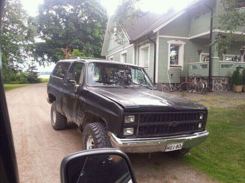 Chevrolet Blazer 85 6.2 DieselProjekti Rusinalaiva Tuli ostettua tommonen rusinalaiva ja saada se leimalle pienellä budjetilla. Noh homma lähti sitten vähän hanskasta tässä on viime syyskuusta blazzun matka tähän päivään: -Ostopäivän jälkeen auto lähti vallilan takomolle että saatiin rusinalaiva kulkemaan suorassa eli uudet jäykemmät lehtipakat taakse -Uusi nokkapelti, konepelti ja sisälokarit lahdesta -Uudet ovet luovutti Suburban nurmijärveltä ja toisen lokasuojan -South West Tradista ostin uuden ulkolokasuojan toiselle puolelle Kun oltiin pellit saatu kuntoon, laitoimme kaverin kanssa sähköt toimimaan, takajarrut uudet jouset ja kengät.. ei muuta ku leimalle. Noh takajarrut eivät toimineet yhtään ja hetken tutkiessamme selvisi että vetarin stefa oli antanut periksi. Noh peräkoppa auki ja sieltähän paljastu paljon muutakin. Perän lukosta oli hampaita kadonnut ja veti aivan viimesiä. Hetken aikaan etsiskellen eikä sopivaa varaosaa löytynyt, sain kaverilta väliaikasen taka-akselin joka on tälläkin hetkellä alla. Päätin siis tilata amerikasta uuden eatonin perän, uudet vetarit, laakerit ja iskarit. Vanha akselikoppa on hiottu ja maalattu vasaralakalla. -Auto on hiottu sisältä ja maalattu nyt happomaalilla, pohja on hitsattu.