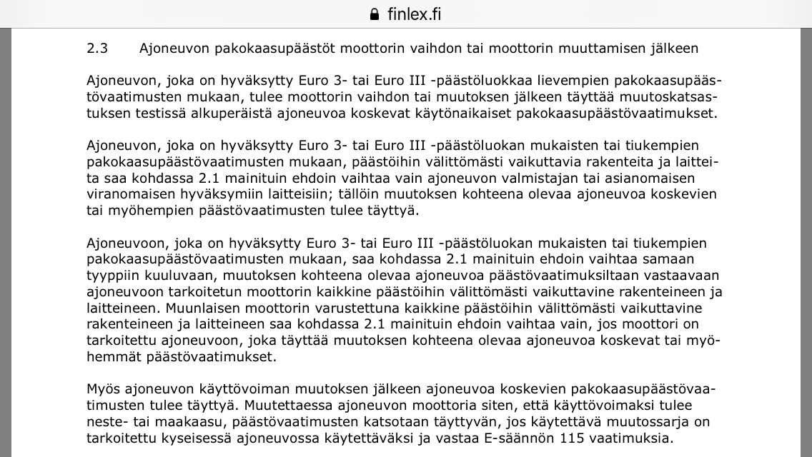 3.0 d vm. 90 olisi moottori, tuli tuossa mieleen, että jääköhän jo päästöistä kiinni?