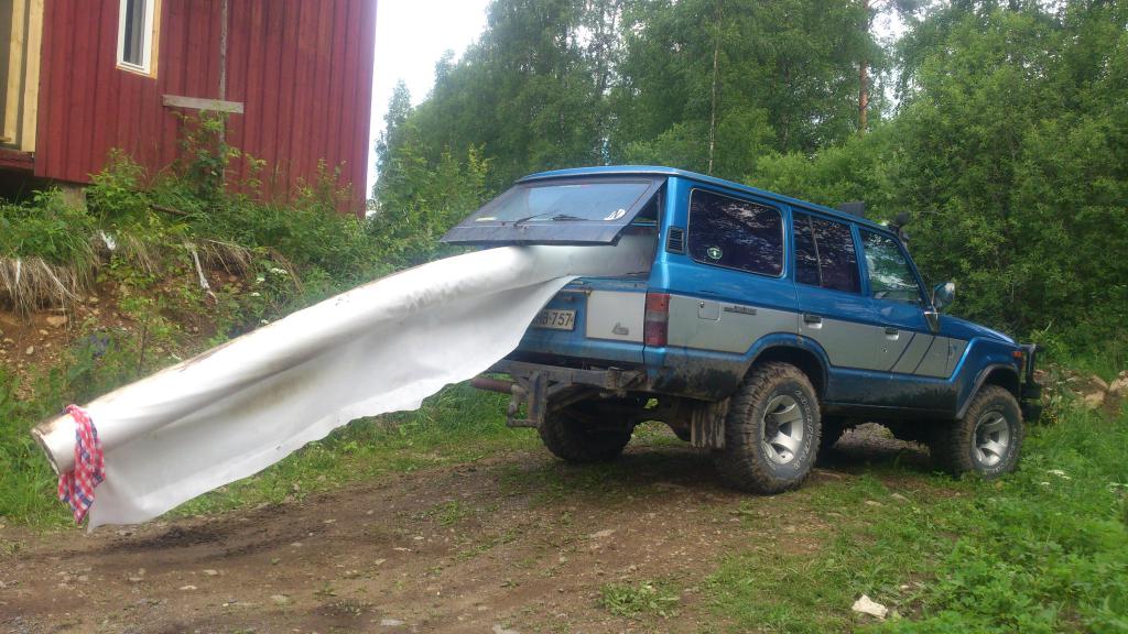 Hyvin mahtuu 5.75m. levee maanrakennuskangas HJ:n kyytiin, vaikka tuulilasi tuli vastaan...