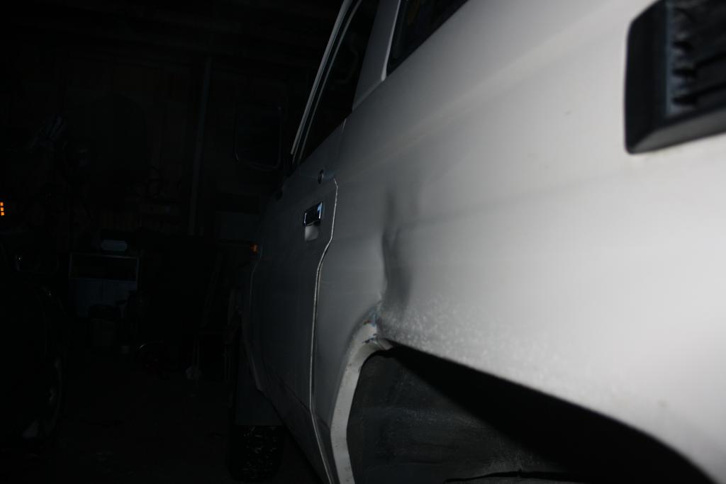 Kaivoinpa tuommoisenkin projektin esille jonka pari vuotta sitten tein Isäukolle. Viime syksynä hirven haku reissulla Isännällä kävi pieni vahinko tämän auton kanssa. Pirun liukkaalla kelillä auto ja peräkärry menivät linkkuun ja kuskinpuolen kylki meni ruttuun. Onnea oli mukana kun auto pysyi tien päällä eikä se valunut tien vieressä olleeseen syvään ojaan. No onneksi tuo pelti hiukan minua tottelee joten jotakin tuolle pitää tässä tulevan kevään aikana yrittää keretä tehdä.