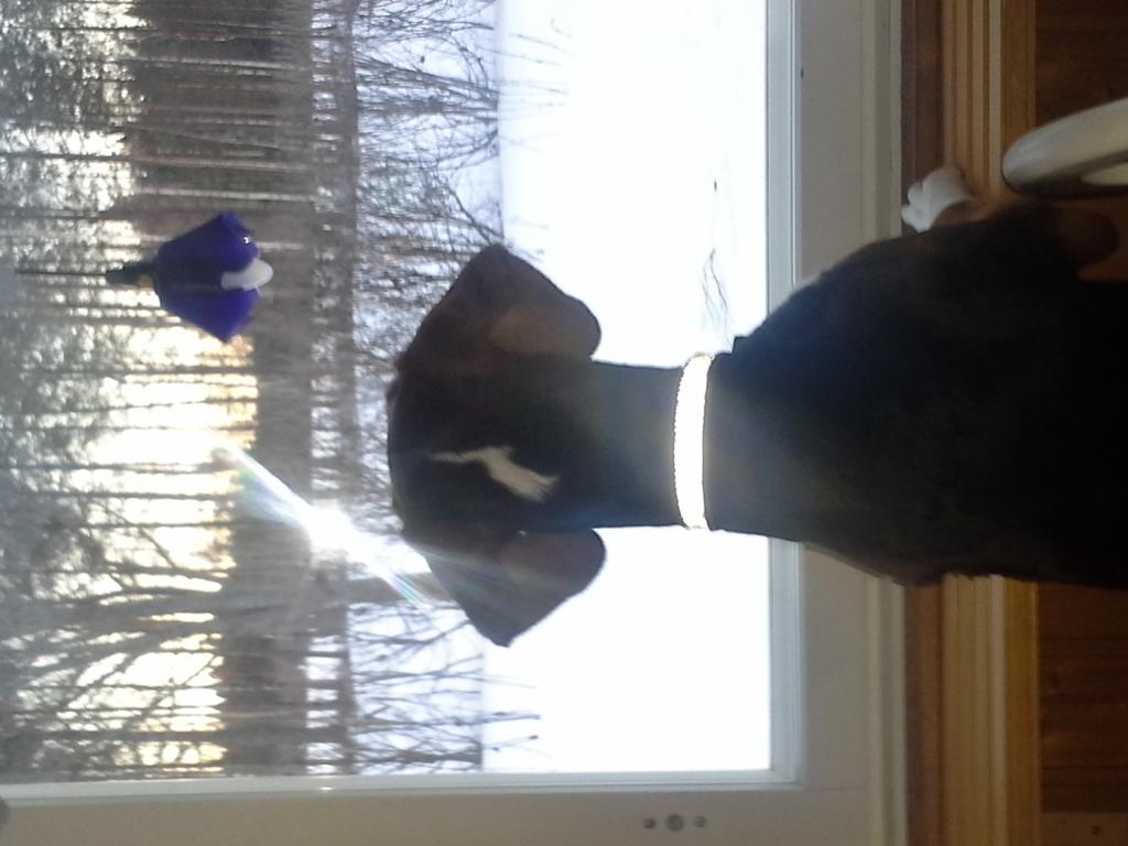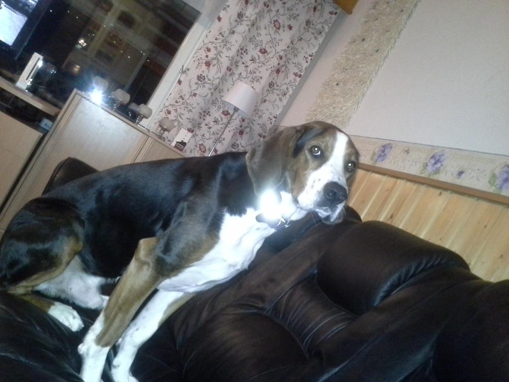 Fifty-sixty sekoitus dobermannia ja lapinkoiraa. Isä puhdas dobberi ja emä puhdas lapinkoira. Pikku hiljaa alkaa sisäsiisteys kohentua eli osaa jo ilmaista että ois phalle päästävä. On yhä pentu, näykkii jne jne. Vahingossa etuhammas nappasi nahankin auki, hyppäsi vasten ja kun olin laittamassa koiraa alas nin hammas otti kiinni ihoon ja vekki ja tippa verta, koira oli kyllä heti korvat luimussa vaikka en sitä torunut, ilmeisesti ymmärsi että nyt kävi jotain mitä ei pitänyt käydä. Kissanhiekkalaatikko on vastustamaton paikka, siinä on työnsarkaa..... Pihalla tuo on vapaasti lasten kanssa, toivottavasti oppii tontin rajat ja oppisi vielä pysymään tontilla niin sitten voisikin laittaa kyltin tien varteen. "vaimo haukkuu mutta koira puree, tervetuloa" Nii joo, voi jeesus mikä ruokahalu, ja tuo kasvuvauhti... |