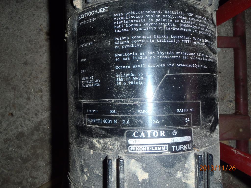 aggregaattiMyydään Myyn ylimääräisenä huollettu(öljyt vaihdettu,tulppa ja suodatin ja kaasarin sisuskalut kaikki). Huolto maksoi 100e liikkeessä ja toimintatakuun annan. Vähällä käytöllä itsellä. Merkki taitaa olla briggs&stratton 8hv. Mallia USA ei mikään kiinan ihme. Tyyppikilvessä 3,4kw teho. Öljyvahti. Yhteydenotot nol4nolnol922350 ja arvoa en tiedä mut 400e laitan. Sijainti Mikkeli. Kuomukärry vaihdossa tai rahana.Myydään Viimeksi muokannut jopo17 : 26.11.2013 11:33 |