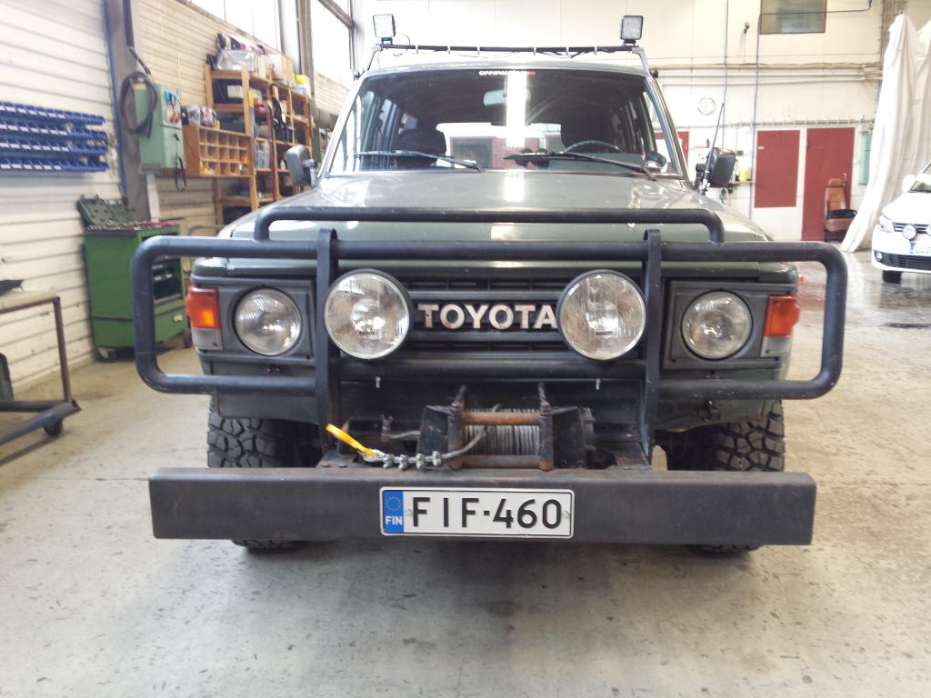 HJ 60 -84 TD, KatsastettuMyyty 3h huoltoauto, ajettu 461 000 km+ Turbo ja vähintääkin riittävä cooleri (otteessa) n.140hv + Uuden karheat 31x10,5R15 BFG Mudterrain Km2 kromivantein (otteessa) + Hankookin nastat 235/75R15 + Akut uusittu alkuvuodesta -12 + Kytkin vaihdettu 4/2014 + HJ-61 lukkoakselit omilla vaijereilla + Mekaaninen vinssi 10mm vaijerilla + Tolkut puskurit ja nautarauta lisävaloilla + 3500kg koukku + Pari xenonia ja muutama ledi katolla + Letkulämmitin ja sisätilan pistoke + Katsastettu 8.9.2014. Seuraava 30.11.2015 mennessä + Öljyt ja suodatin sekä pa-suodatin vaihdettu 8.9.2014 - Kylkipeltejä sisässä - Runko takaa ja alempi takaluukku melko ruosteessa Enemmän kuvia http://forums.offipalsta.com/album.php?albumid=6972 Kajaanissa henri.tikka@netti.fi 0504068497 Vaihtoa voisi harkita max. saman hintaiseen farmariin tai karvan kalliimpaan jos oikeasti hyvä vaihdokki Tarjouksiakin saa esittää jos näkemys hinnasta toinen Myyty Viimeksi muokannut Tikanpoika : 31.10.2014 19:49 Perustelu: myyty |
