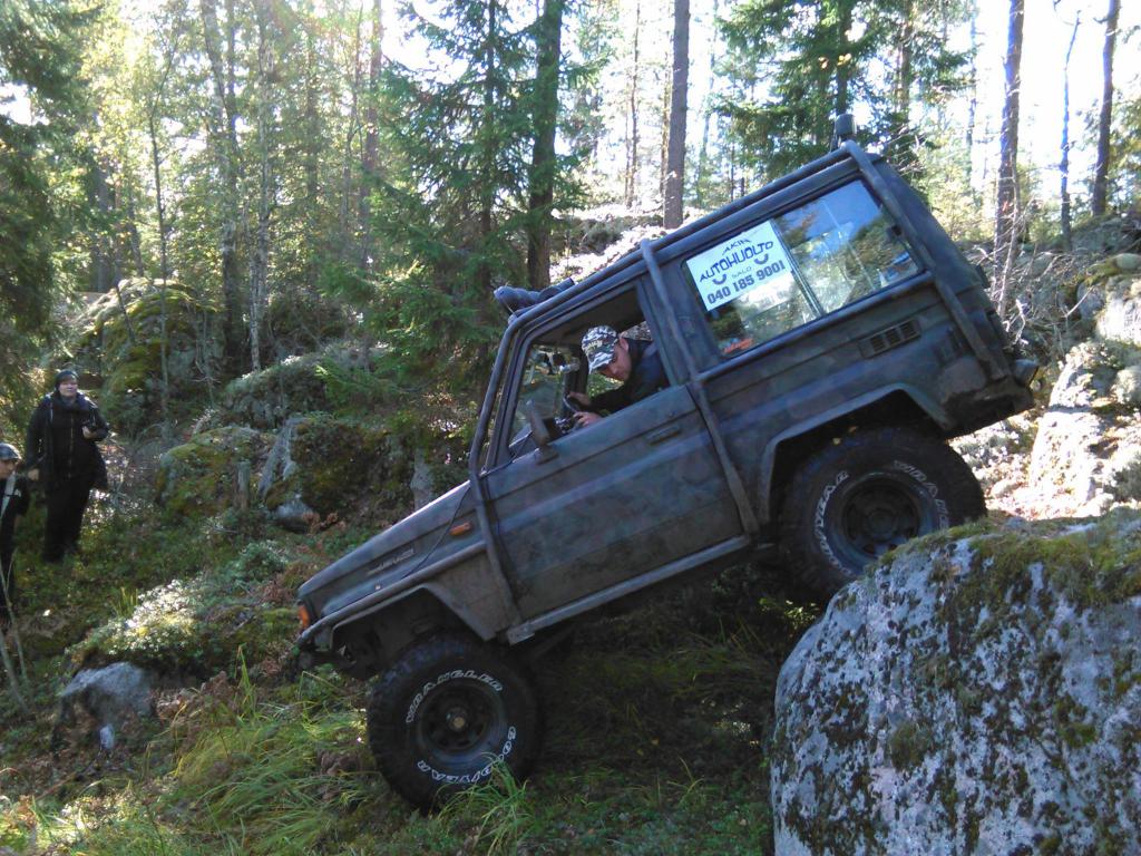 Rj70 lelusta maasturiksi.Tullut vuosien varrella alotettua monia projekteja mutta tuntuu että tämä on ainoa joka on edennyt mukavasti niin laitetaanpa pientä kertomusta tästä. auto tuli ostettua syksyllä 2013 (kuva1) autossa oli trailmasterin alusta sekä 33" mutikat + vinssi, palkkihelmat sekä kasa valoja. näillä mentiin puoli vuotta kunnes alkoi RJ:n ajo-ominaisuudet maantiellä häiritsemään niin paljon että auto meni myyntiin ja tilalle tuli king cap. Offi-innostus alkoi kunnolla vasta king capilla ja pian tajusinkin että RJ olisi pikkasen etevämpi peli kuin king cap. meni n. 6kk RJ:n myymisen jälkeen kun king capilla offailu sai riittää. ei muuta kuin takaisin nettiautoon ja kas. oma vanha tuttu RJ:hän se siellä myynnissä ja ei kun kaupoille. -Ostin auton takaisin samalta hepulta jolle sen myin. Tästä alkoi harrastaminen. ensimmäiseksi autoon tehtiin kunnon astinlaudat RHS:stä (kuva 2) Syksyllä 2014 huomasin että maasturissahan pitää olla kunnon snorkkeli ja ei muuta kuin hakemaan imuriletkua ja rasiapora. Imuriletku katolle ja RS clion ilmanputsari letkun päähän ja kovaa ajoa. (kuva3) Seuraavaksi ruvettiin vääntämään nojailukaaria ja samalla auto vaihtoi väriä maastoon sopivammaksi ja asennettiin kemppilukko taakse. (kuva4) Tällä ajeltiin jouluun asti, ainoa mikä menoa tuntui haittaavan oli RJ:n peräylitys, tankki ja natokoukku. (kuva5) -Asia päätettiin ratkaista siten että vaihdetiin 35" kumit beadlockeilla ja autosta leikattiin 19cm takapäästä pois, tankki vaihtui ensin veneen tankkiin (sittemmin turvatankkiin) ja natokoukulle ei tehty mitään. (kuvat 6,7) (lyhennyksestä lisää juttua ja kuvia täältä: http://forums.offipalsta.com/showthread.php?t=125036) Nyt auto oli oleva hyvä. -tosin menopuoli vielä oli hieman heikonlainen avoimen etuperän takia joten tähän päätettiin hankkia arppi. näillä mentiinkin kevääseen 2015. keväällä 2015 päätettiin heivata kemppilukko takaata pois ja vaihtaa arppi tilalle. samalla päätettiin tehdä onnettomalle kulkupuolelle jotain. pakosarja vaihtui peltisarjaan, Imusarja portattiin kanteen ja imusarjan vesikierto hitsattiin umpeen. Alkuperäinen mehumaija nakattiin mäelle ja asennettiin weberi. Tehoa tuli selvästi lisää nyt jaksaa mennä ylämäkeenkin, tosin kulutuskin kasvoi samalla. Samalla reissulla tehtiin liuta muita pikkuparannuksia. (kuva8) kesän aikana ulkoisia muutoksia ei ole tullut pientä parantelua sitäkin enemmän. (kuva9) nyt suunnitelmissa on joko koko tekniikan vaihto tai sitten pelkkä välityksien muutos sekä rankka dietti jotta saadaan paino pois.
