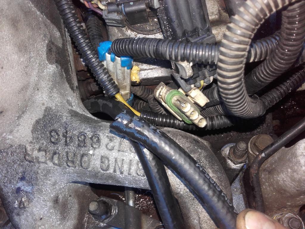 chevy 6,5 kone vaihto yksi piuha ja nahfta linja etsii paikkaansaAutoon olis nyt kone vaihettu ja yksi pistoke ei löydä paikkaansa kuvassa kolminapainen vihreä. Sekä tuo naftaletku joka on kädessä tulee suodattimen vasemmalta puolen ja ruutaa tiisseliä kun virrat laittaa päälle.