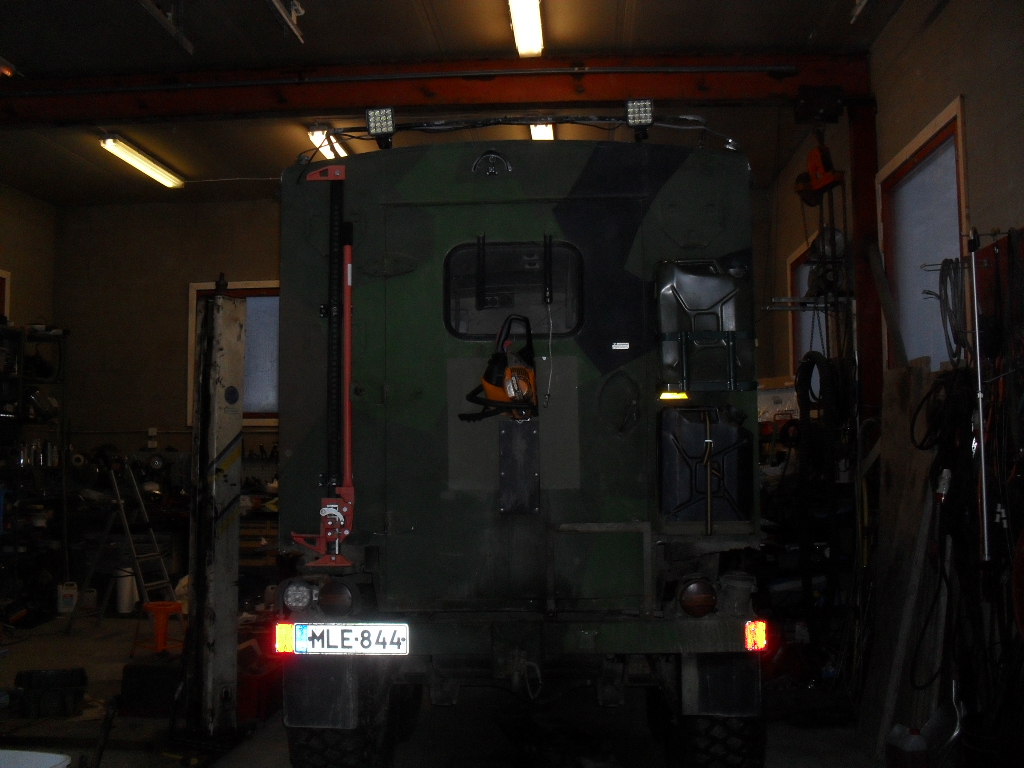 Volvon Ambulanssista monikäyttöautoRekisteröity 1+8,eli henkilöluku ihan riittävä Jostain se on aloitettava,niinpä kasasin ensimmäisen sängyn malliksi. Sänkyjä sopii fiksusti 4 kappaletta ja on säädettävissä (nelipiste säätö)vaateriin vaikka auto jäisi suo-ojaan kallelleen yöksi sekä uupuneen apumiehen voi kantaa puunjuuresta paareilla kuiviin sisätiloihin.(jatkossa toivottavasti lämpimiin sisätiloihin)![]() "Koppiin" ei ole tarkoitus rakentaa mitään niin kiinteää,että se rajoittaisi jotain tulevaa käyttötarkoitusta ![]() Päivitystä 23.1.2017 vm.-79,aj.n.15 000km Renkaat maxxis creply 38,5x14.5-16 Vanteena levitetyt,halkaistavat betlok joissa sisällä "rumpuputki" ja paikkausaine Chevyn simpukka ja pajeron pumppu (samalla vahvistettu "ohjausvarret") Binar 5kw vesiwebasto ja 3kw letkulämmitin kiertopumpulla Paljon lisävaloja eteen,sivulle ja taakse Keulavinssi ja etuosan turvakaaret Peruutuskamera,LA-puhelin ja radio Snorkkeli ja ilmanputsari katolla sähköinen sytytys Inventerit 240v/1000w,12v/40A(kompura tms... pyöritykseen) Optima akutx2 Isompi laturi 80A/uusi 2kpl jerrykannuja telineillä Maastotunkki ja sahateline Lokasuojan levikkeet kumista Micro ja tarvikelaatikko Makuupaarit 3kpl