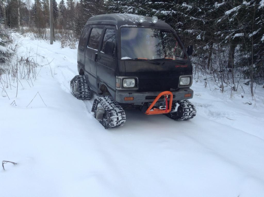 Daihatsu Hijet telahärveliMyyty Teloillavarustetu minipaku. Noin litrasella bensakoneella, manuaali vaihteilla. Leveys noin 160cm. Tekniikka toimii. Täällä pääsee vähän pehmeämpäänkin paikkaan. Vetokoukku,vinssi narulla, lohkolämmitin, valoja eteen ja taakse. Penkit kahdelle. Avattavat takasivulasit. Tässä on jakolaatikko jossa iso ja pienipuoli. Taka-akseli kempattu. Tästä mönkiän korvike jossa saat istua lämpimässä kopissa ja tavaraakin mahtuu kyytiin mukavasti. Teloilla voi ajaa kesät talvet]Myyty
