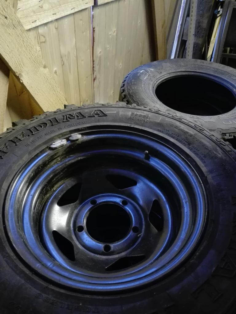 31/10.5 -15 "bogger"Myyty Myydään 31/10.5 -15 Fedima Trial ADE renkaat 5x139.7 vanteilla, käy esim Suzuki tai DaihatsuVanteet ja renkaat lähes uudenveroiset, ajettu vain muutaman kerran. Parissa renkaassa kuviossa vähän jälkeä kun osui lokarinreunaan. Ostettu pari vuotta sitten Offroadtarvikkeelta. Hinta 600€ tai hyvä tarjous. Vaihdossa kelpaa vaikka optiman akut tai 50m vinssinarua. Mieluiten nouto. 0407401212 Myyty