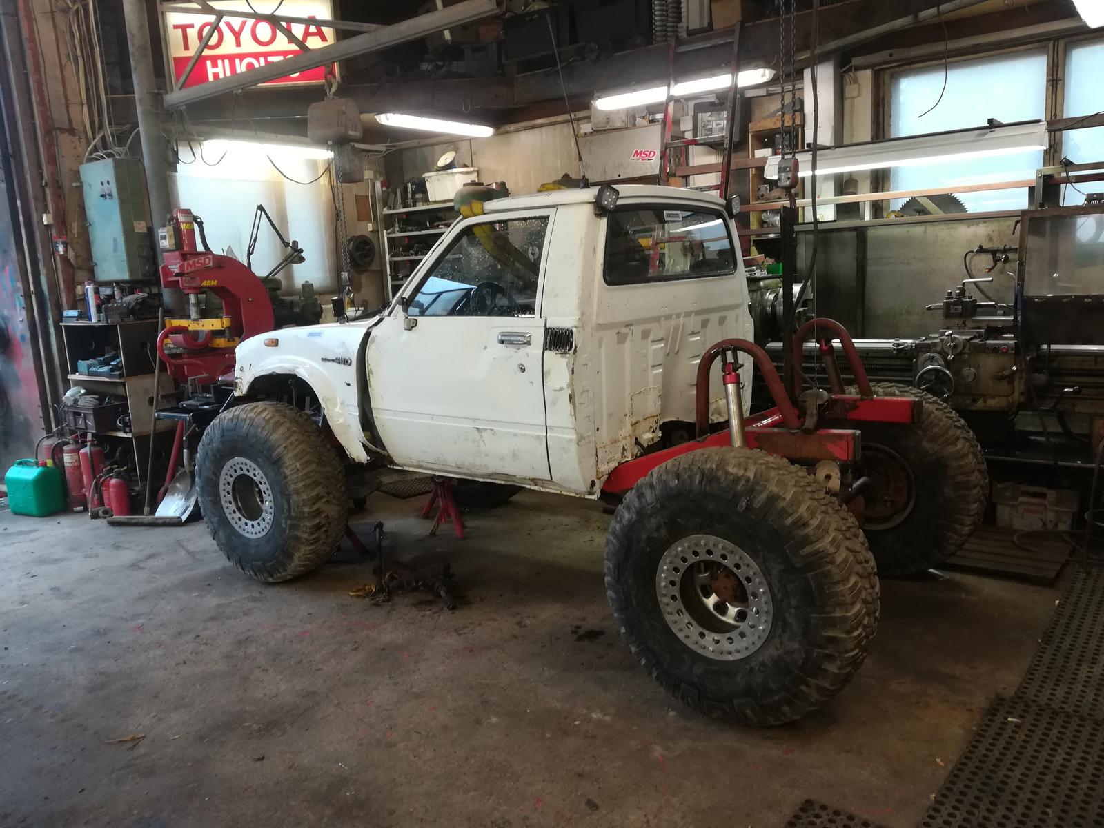 Hilux 1.0 & suzuki rojektiaPajero lähti tilalle tuli hilux ln46 -83 koitettaas tehdä tästä jonkinmoinen maastokulkine. Kierrealustanteko alkanut taakse tulee uuskoppasen ljn jakarit. Taka-akseli purettu ja turhat kiinnikkeet leikelty pois.