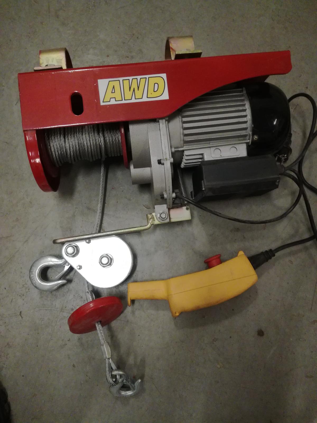 AWD SähkötaljaMyydään 500/1000kg nostava sähkötalja myynnissä, pari kertaa käytetty. Toimii verkkovirralla.Luumäellä hintaan 300€ 040 5388 o36 Myydään