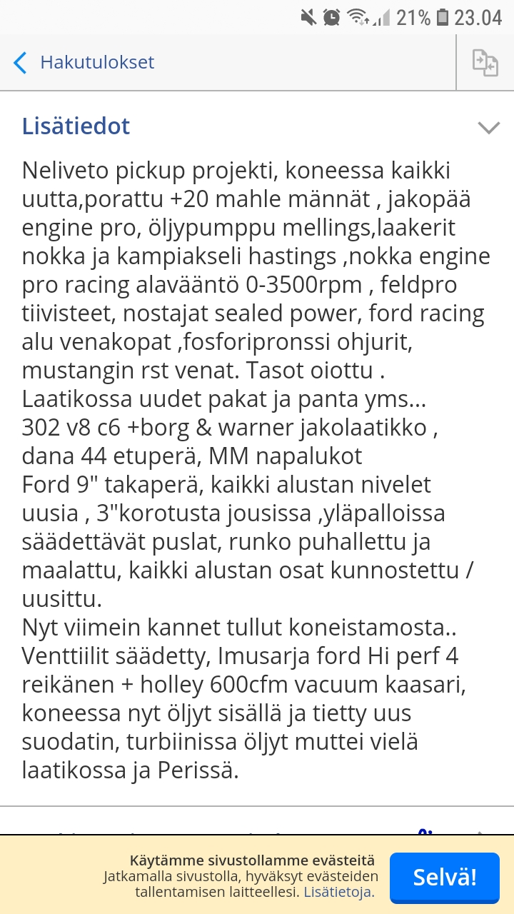 | Myydään ford f150 1980 | SILLISALAATT | O/M/V Varaosat ja tarvikkeet | 1 | 20.01.2020 10:57 |