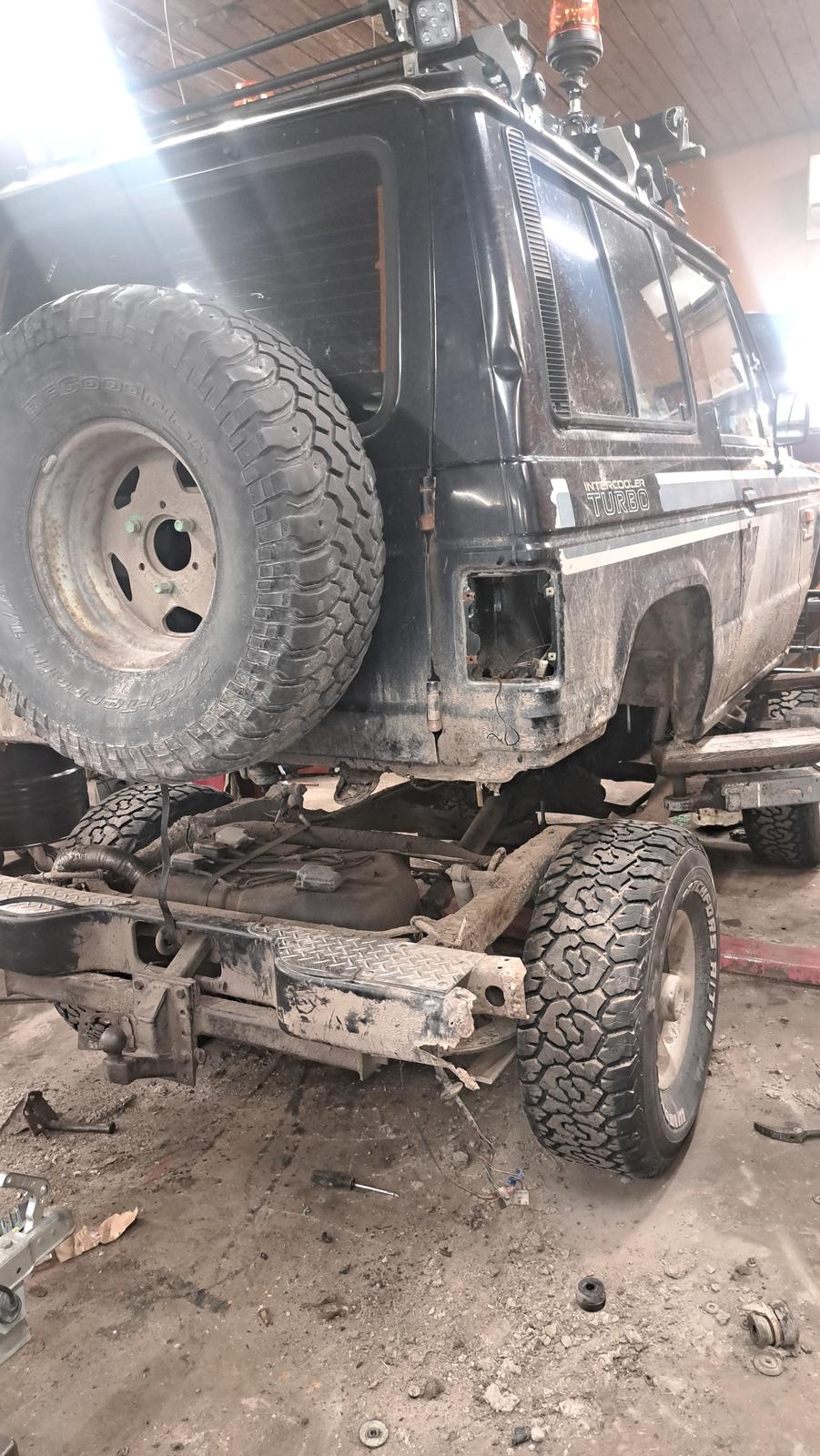 Pajeron rungon ehosteluTulipas tuossa aloitettua katsastusta varten pientä urakkaa. Tarkoitus olisi tehdä rungosta taas runko, olihan tuo jo vähän hapannut. Tarkoitus ei ollut nostaa koppaa pois mutta oli hyvä, että tuli nostettua.Takaa oli runko käytännössä poikki ja pituussuunnassa halki. Lisäilen valokuvia homman edetessä.