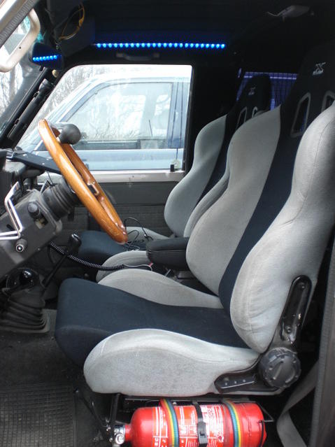 4 työvaloa katolla eteen ja taakse 2 jerrykannun teline o/takaovessa Irrotettava vetokoukku Etuvinssi siellä syvyydessä, missä normaalisti on syyläri, tässä on siirretty syyläriä taaksepäin n 10-15 cm. Etulokarit avarrettu, reunassa 3x30 latta ja kaikissa kaarissa muovilevitys 50mm. Mittareita on pakolämpö, ahtopaine, moott.lämpö, öljynpaine, pakopaine. 300w invertteri Paikka kannettavalle koneelle Toinen akku takaluukussa, erotettu toisistaan katkaisijalla Safari snorkkeli Oksavaijerit |
