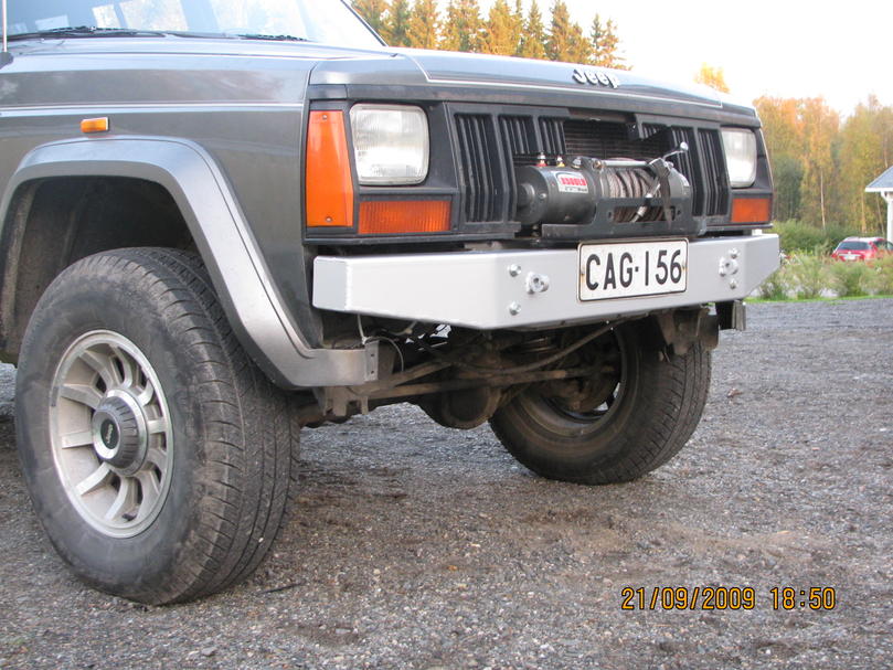 "KAKI" uuteen nousuunrunnerin lähdettyä taipaleelle pihaan ilmestyi kuvan kaunis 91 vuoden cherokee hetken mielijohteesta.edullinen hinta houkutteli ja kun visioita rupesi lentämään enemmän kuin finnairin koneita niin katsotaan mitä tästä nyt sit tulee vai tuleeko mitään.karmea nimi kaki jountaa juurensa työkaverin väläytykseen kilpeen perustuen,kiitos silverille! kinnerin pitäisi ruokkia myös käyttöauton virkaa niin ei aivan mahottomiin voi mennä,toistaiseksi. heti tlattiin RoughCountryn 3" korottava setti ja kunhon kl-71 renkaat kokoa 33/12.5-15.vanteita ei vielä ole kun koko tai pikemminki ET mietinnässä.vinssi jo kovasti menossa keulaan,palkkipuskurin kera,vaiheessa. alustakin tuli ja meni myös paikalleen kahden miehen hillittömän ähkimisen jälkeen.pultit oli mielettömän tiukassa takajousilla,ei meinannut lämpö,lyönnit ja crc auttaa ollenkaan.10 tunnin tappelun jälkeen saatiin auto takasi pyörilleen. itselle nää jeepit on vielä vierasta aluetta joten kaikki vinkit yms on tervetullutta. jatkuu....