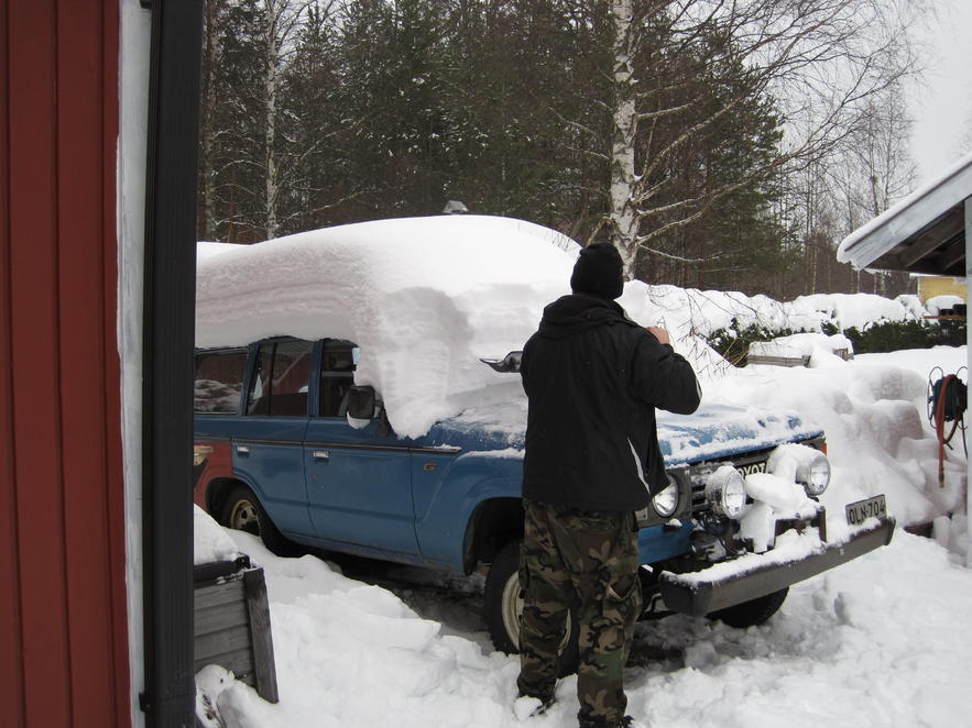 Rojekti 61Juu laitetaanpa tänne yks hj rojekti lissää. Tuosa noin vuosi sitte hommasin tuommosen 61:sen kulukineeksi. Autoon oli tehty edellisen omistajan toimesta SOA, pitemmät riiput ja 50mm korin korotus. Nämä jälkimmäiset kapistelin pois viime talaven aikaan ja muutenki se talvi meni sitte autoa ihmetellesä tallisa ja katsastus remppaa tehesä. Kuvia ei tullu niistä juomingeista otettua. No yks kuva ku sai kotteron siihen pisteeseen et voi "vähä" koittaa pihalla lumihankeen. Eihän sillä mihkään päässy ku lukot ei toiminu ja pohjasta kiinni ![]() Vinssi hommiksihan se meni. Ei muutaku kaivamaan 60:nen lumen alta esiin ja tulille et saahan maitovalas hangesta talliin takas märehtiin..