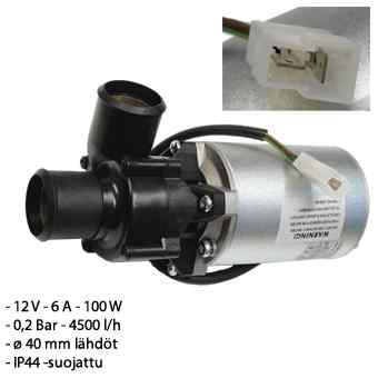 Pumppu on suunniteltu lisäpumpuksi webastolle, joten kestää normaalin jäähdytinneste lämmön. 0,2bar 4500l/h (75l/min)