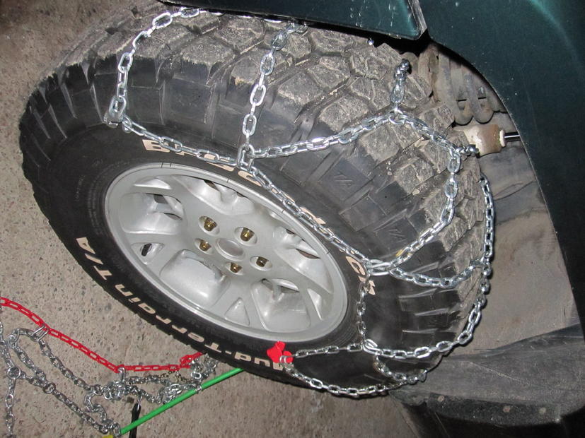 Vielä olis ketjut, kerkee vielä ennen lumia kiristellä paikoilleen.