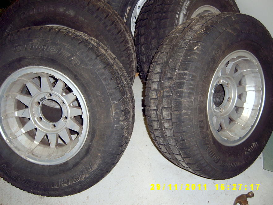 BWA 7x15 alut ja 265/70-15 Cooper Discoverer M+SMyyty Ja nyt "näyttävät" vanteet ja renkaat kaupan! (Auto hävis päältä!) Alut suht hyvät, mitä nyt tämmösissä on enempi tai vähempi hapettumaa! ET-20 , 6 x 139,7 Jako (Japan!) Olleet Toyotassa, levittää aika hyvin ulospäin! Renkaat Cooperin kitkakumit, ajelee niilä vielä tovin, pintaa n.6mm!HP: 249e / tarjous P: 040-5211518 Ari Hyvinkää MYYTY! Myyty Viimeksi muokannut HJ-ARI : 29.11.2011 21:26 |